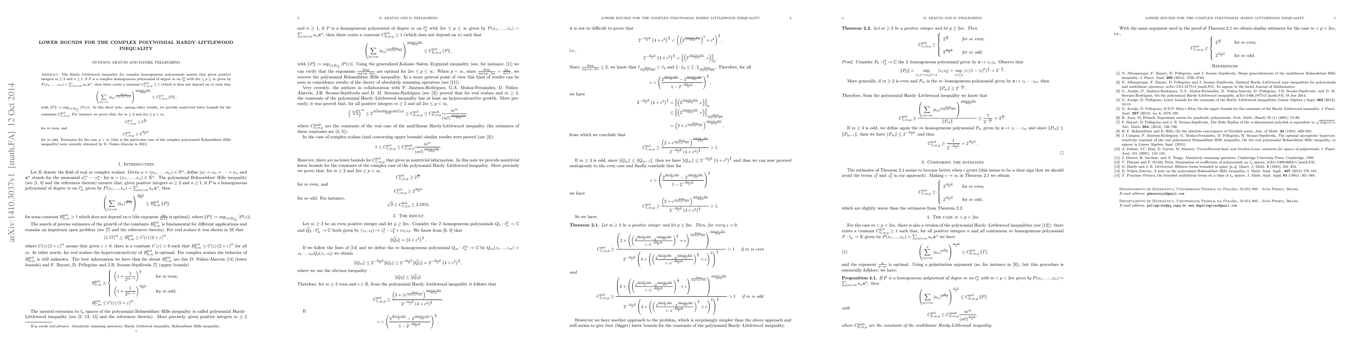 The Hardy--Littlewood inequality for complex homogeneous polynomials asserts that given positive integers $m\geq2$ and $n\geq1$, if $P$ is a complex homogeneous polynomial of degree $m$ on $\ell_{p}^{n}$ with $2m\leq p\leq\infty$ given by $P(x_{1},\ldots,x_{n})=\sum_{|\alpha|=m}a_{\alpha }\mathbf{{x}^{\alpha}}$, then there exists a constant $C_{\mathbb{C},m,p}^{\mathrm{pol}}\geq1$ (which is does not depend on $n$) such that \[ \left( {\sum\limits_{\left\vert \alpha\right\vert =m}}\left\vert a_{\alpha }\right\vert ^{\frac{2mp}{mp+p-2m}}\right) ^{\frac{mp+p-2m}{2mp}}\leq C_{\mathbb{C},m,p}^{\mathrm{pol}}\left\Vert P\right\Vert , \] with $\Vert P\Vert:=\sup_{z\in B_{\ell_{p}^{n}}}|P(z)|$. In this short note, among other results, we provide nontrivial lower bounds for the constants $C_{\mathbb{C},m,p}^{\mathrm{pol}}$. For instance we prove that, for $m\geq2$ and $2m\leq p<\infty$, \[ C_{\mathbb{C},m,p}^{\mathrm{pol}}\geq2^{\frac{m}{p}}% \] for $m$ even, and \[ C_{\mathbb{C},m,p}^{\mathrm{pol}}\geq2^{\frac{m-1}{p}}% \] for $m$ odd. Estimates for the case $p=\infty$ (this is the particular case of the complex polynomial Bohnenblust--Hille inequality) were recently obtained by D. Nu\~nez-Alarc\'on in 2013.