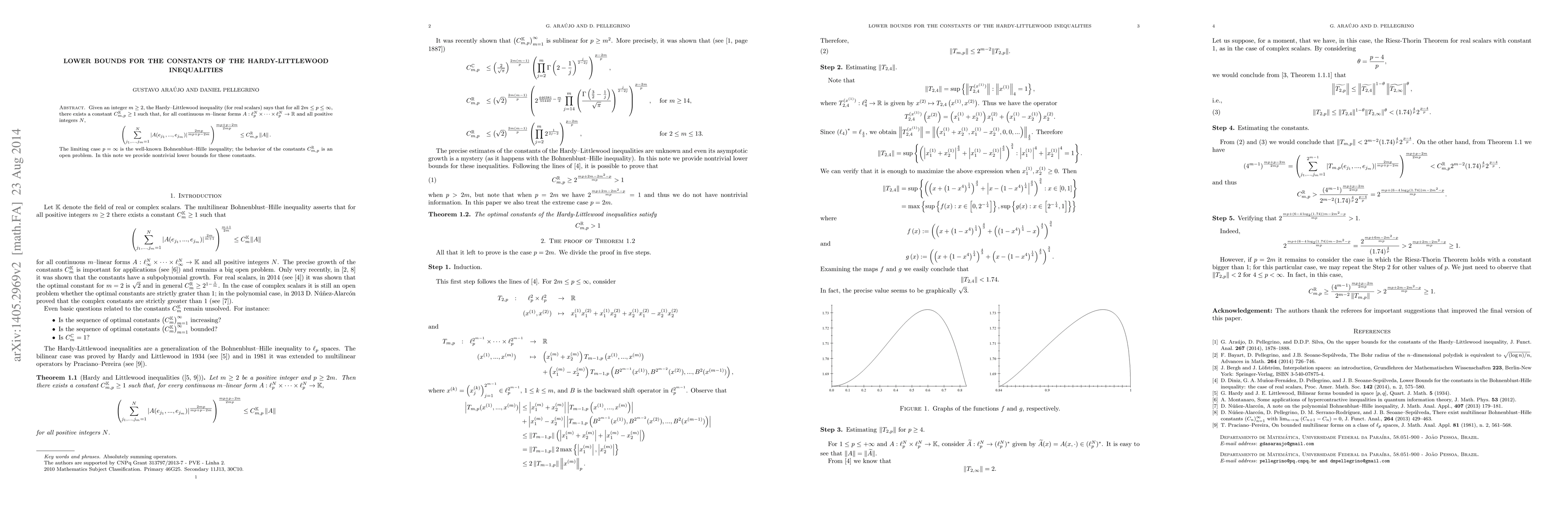 Given an integer $m\geq2$, the Hardy--Littlewood inequality (for real scalars) says that for all $2m\leq p\leq\infty$, there exists a constant $C_{m,p}% ^{\mathbb{R}}\geq1$ such that, for all continuous $m$--linear forms $A:\ell_{p}^{N}\times\cdots\times\ell_{p}^{N}\rightarrow\mathbb{R}$ and all positive integers $N$, \[ \left( \sum_{j_{1},...,j_{m}=1}^{N}\left\vert A(e_{j_{1}},...,e_{j_{m}% })\right\vert ^{\frac{2mp}{mp+p-2m}}\right) ^{\frac{mp+p-2m}{2mp}}\leq C_{m,p}^{\mathbb{R}}\left\Vert A\right\Vert . \] The limiting case $p=\infty$ is the well-known Bohnenblust--Hille inequality; the behavior of the constants $C_{m,p}^{\mathbb{R}}$ is an open problem. In this note we provide nontrivial lower bounds for these constants.