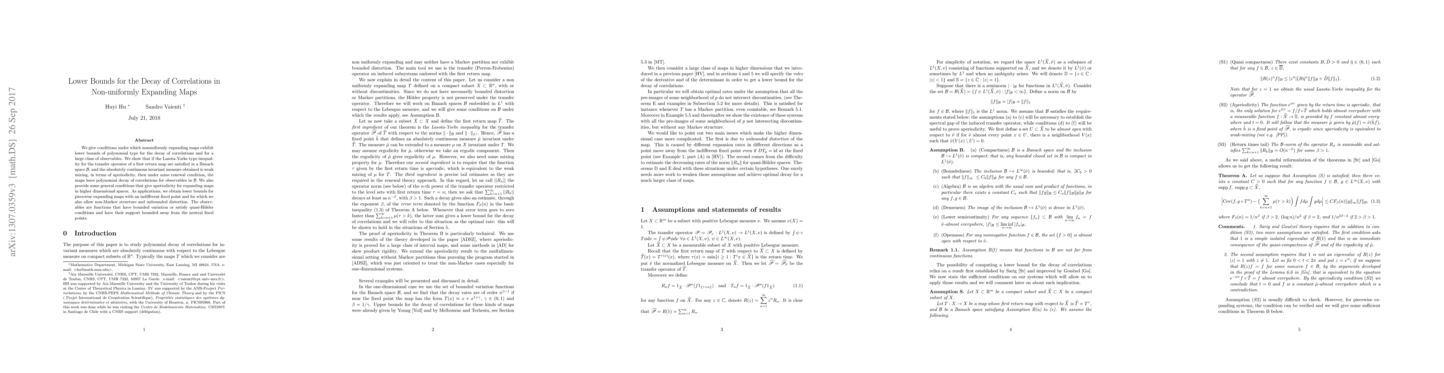 This paper establishes conditions for nonuniformly expanding maps to exhibit polynomial decay of correlations for a wide class of observables. It leverages the Lasota-Yorke inequality and weak mixing of the invariant measure to derive these bounds, with applications to piecewise expanding maps featuring indifferent fixed points and non-Markov structures.