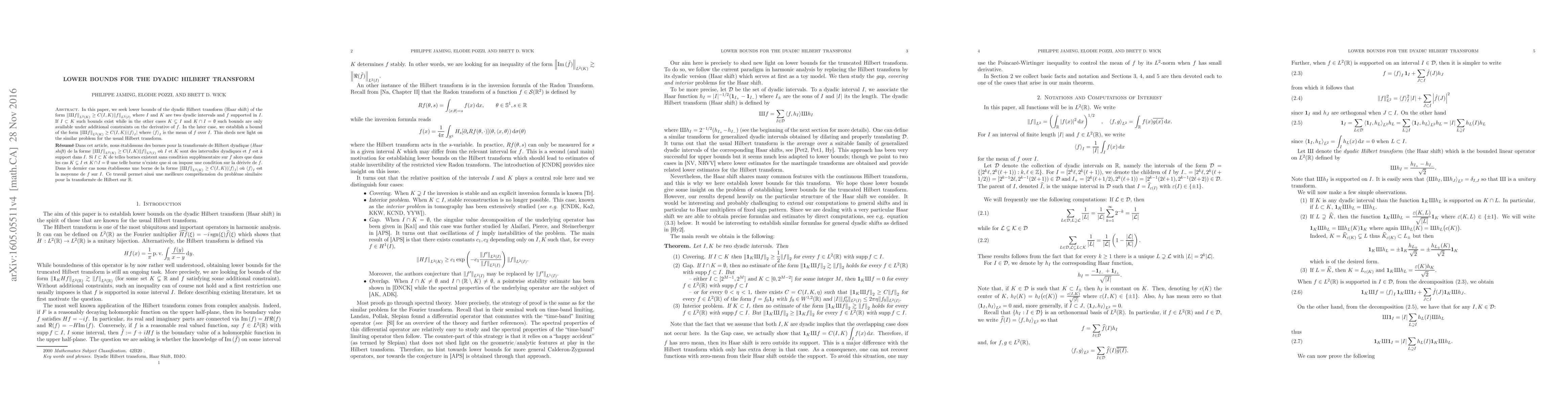 In this paper, we seek lower bounds of the dyadic Hilbert transform (Haar shift) of the form $\left\Vert S f\right\Vert_{L^2(K)}\geq C(I,K)\left\Vert f\right\Vert_{L^2(I)}$ where $I$ and $K$ are two dyadic intervals and $f$ supported in $I$. If $I\subset K$ such bound exist while in the other cases $K\subsetneq I$ and $K\cap I=\emptyset$ such bounds are only available under additional constraints on the derivative of $f$. In the later case, we establish a bound of the form $\left\Vert S f\right\Vert_{L^2(K)}\geq C(I,K)|\left\langle f\right\rangle_I|$ where $\left\langle f\right\rangle_I$ is the mean of $f$ over $I$. This sheds new light on the similar problem for the usual Hilbert transform that we exploit.