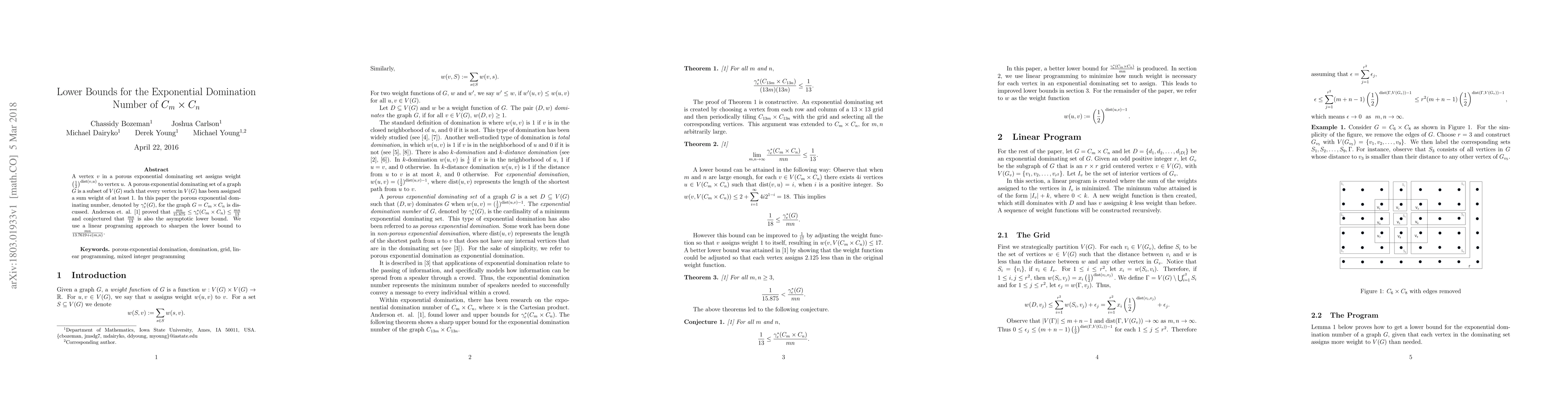 This research paper improves a lower bound for the porous exponential dominating number of the Cartesian product of two cycles, finding a tighter bound of πmn/13.7619 + ε(m,n) using linear programming.
