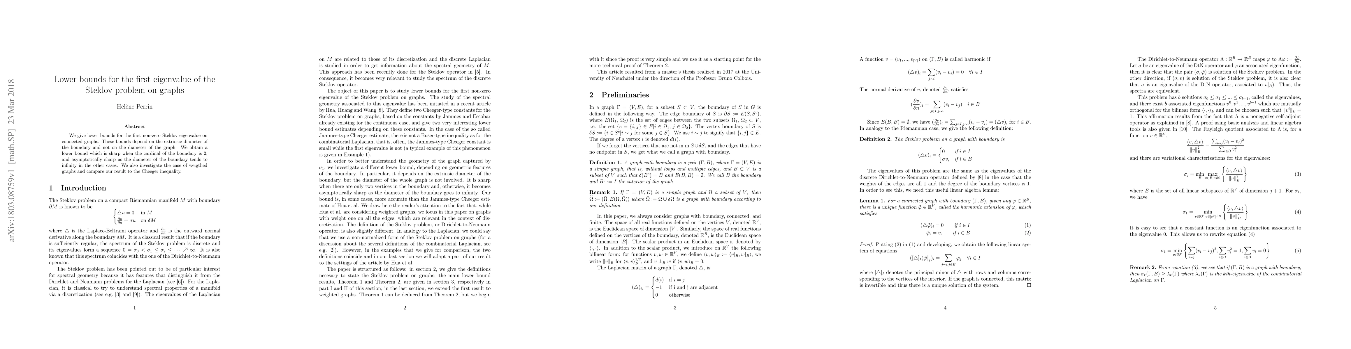 This paper establishes lower bounds for the first non-zero Steklov eigenvalue on connected graphs, showing that these bounds depend on the extrinsic diameter of the boundary rather than the graph's diameter. The authors demonstrate a sharp lower bound when the boundary cardinality is 2 and provide an asymptotically sharp result for larger boundary diameters.