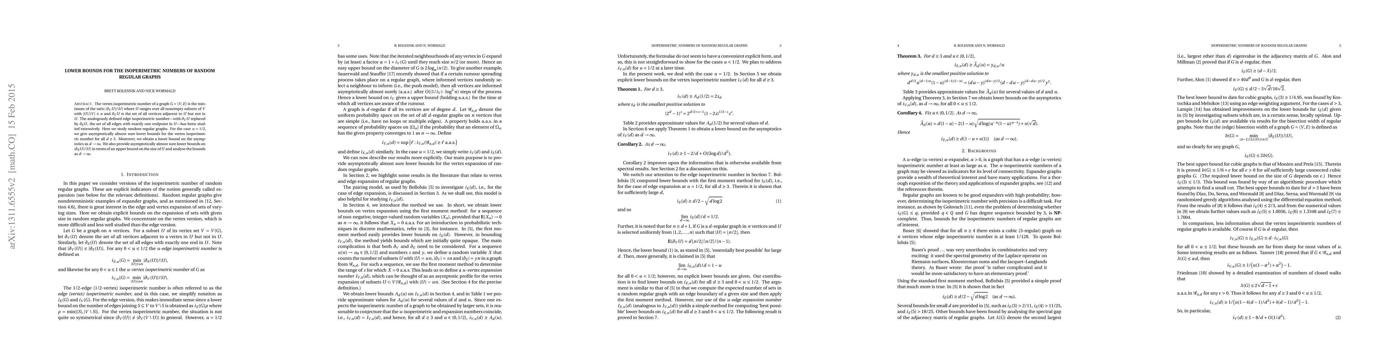 This paper establishes lower bounds for the vertex and edge isoperimetric numbers of random regular graphs. It provides asymptotically almost sure lower bounds for the vertex isoperimetric number when $u=1/2$ for all $d\ge3$ and analyzes the edge isoperimetric number in relation to the size of subsets.