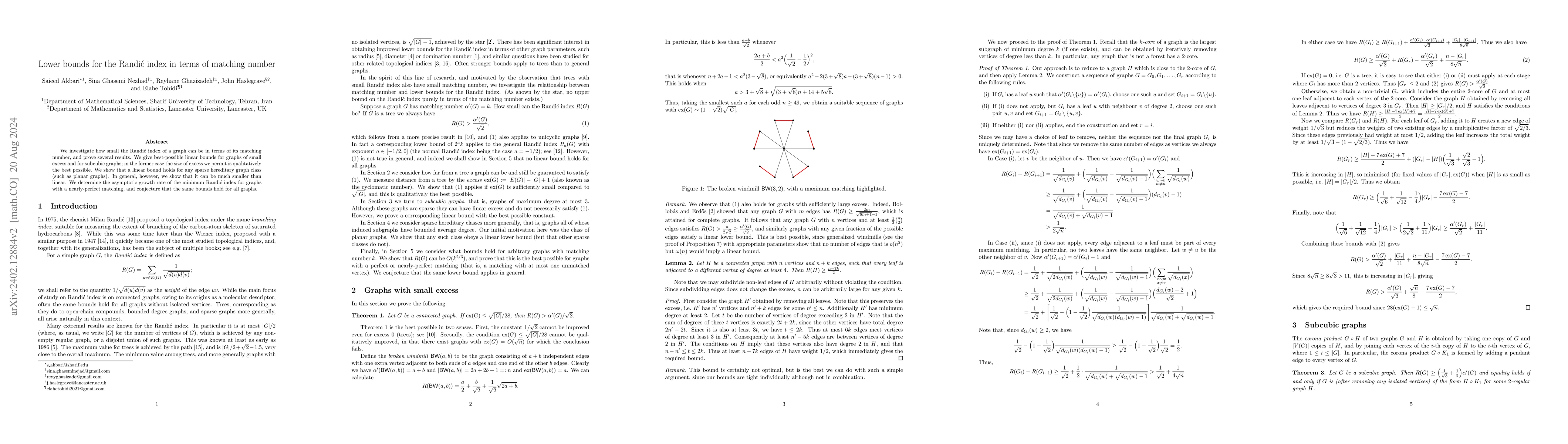 This paper establishes lower bounds for the Randi\'c index in relation to the matching number of a graph, providing best-possible linear bounds for graphs with small excess and subcubic graphs. It also explores the Randi\'c index for sparse hereditary graph classes and conjectures similar bounds for all graphs.