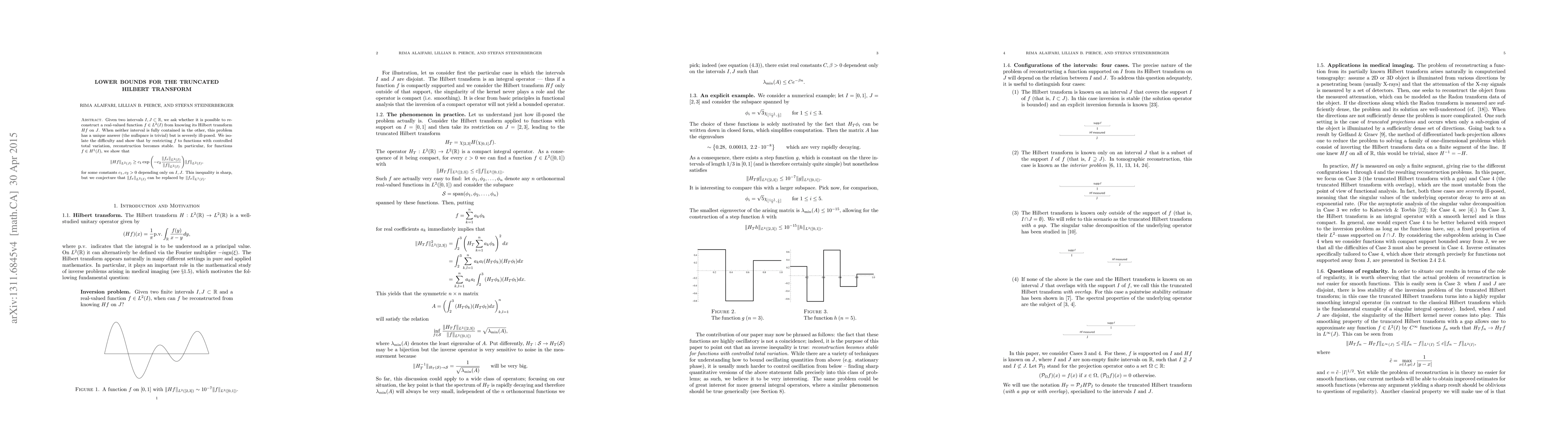 Given two intervals $I, J \subset \mathbb{R}$, we ask whether it is possible to reconstruct a real-valued function $f \in L^2(I)$ from knowing its Hilbert transform $Hf$ on $J$. When neither interval is fully contained in the other, this problem has a unique answer (the nullspace is trivial) but is severely ill-posed. We isolate the difficulty and show that by restricting $f$ to functions with controlled total variation, reconstruction becomes stable. In particular, for functions $f \in H^1(I)$, we show that $$ \|Hf\|_{L^2(J)} \geq c_1 \exp{\left(-c_2 \frac{\|f_x\|_{L^2(I)}}{\|f\|_{L^2(I)}}\right)} \| f \|_{L^2(I)} ,$$ for some constants $c_1, c_2 > 0$ depending only on $I, J$. This inequality is sharp, but we conjecture that $\|f_x\|_{L^2(I)}$ can be replaced by $\|f_x\|_{L^1(I)}$.