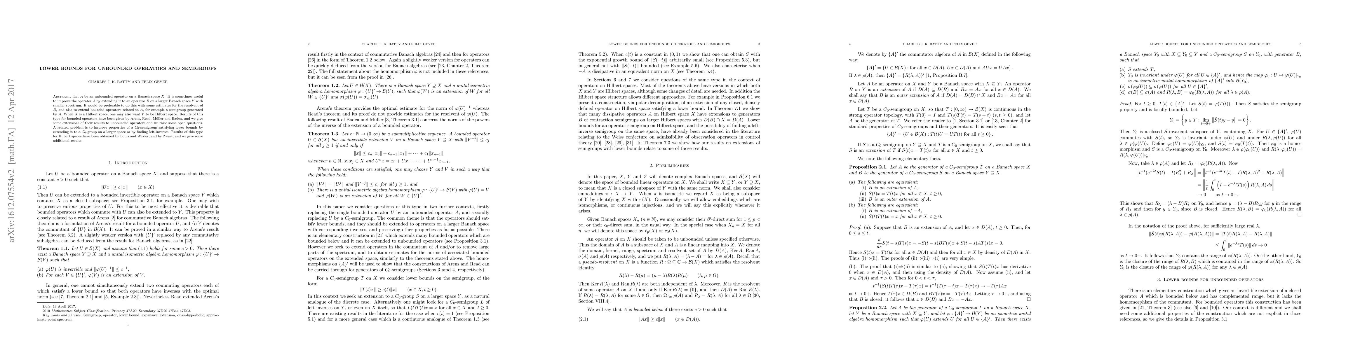 Let $A$ be an unbounded operator on a Banach space $X$. It is sometimes useful to improve the operator $A$ by extending it to an operator $B$ on a larger Banach space $Y$ with smaller spectrum. It would be preferable to do this with some estimates for the resolvent of $B$, and also to extend bounded operators related to $A$, for example a semigroup generated by $A$. When $X$ is a Hilbert space, one may also want $Y$ to be Hilbert space. Results of this type for bounded operators have been given by Arens, Read, M\"uller and Badea, and we give some extensions of their results to unbounded operators and we raise some open questions. A related problem is to improve properties of a $C_0$-semigroup satisfying lower bounds by extending it to a $C_0$-group on a larger space or by finding left-inverses. Results of this type for Hilbert spaces have been obtained by Louis and Wexler, and by Zwart, and we give some additional results.