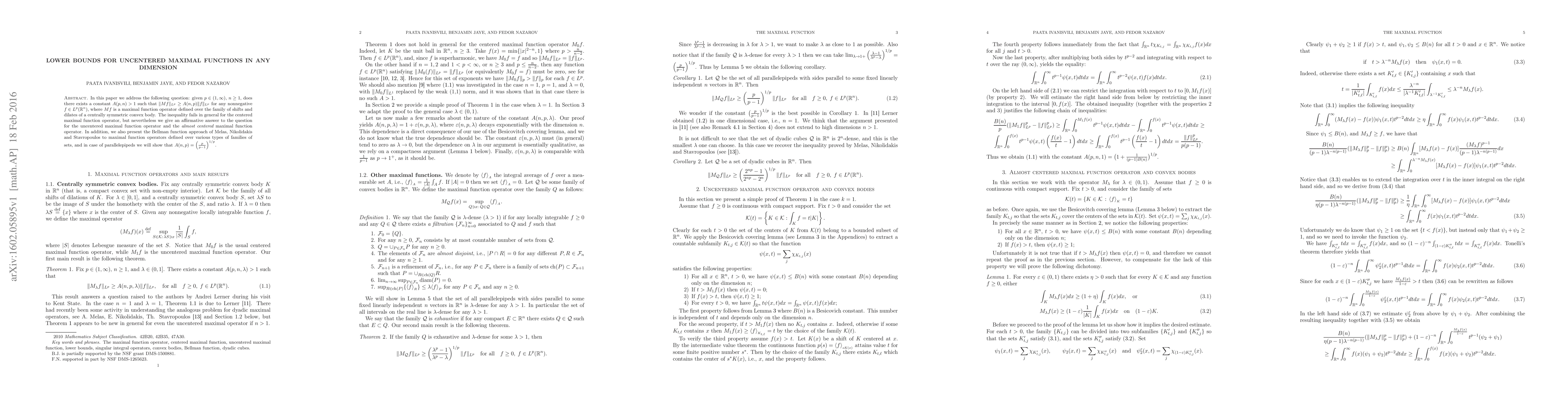 In this paper we address the following question: given $ p\in (1,\infty)$, $n \geq 1$, does there exists a constant $A(p,n)>1$ such that $\| M f\|_{L^{p}}\geq A(n,p) \| f\|_{L^{p}}$ for any nonnegative $f \in L^{p}(\mathbb{R}^{n})$, where $Mf$ is a maximal function operator defined over the family of shifts and dilates of a centrally symmetric convex body. The inequality fails in general for the centered maximal function operator, but nevertheless we give an affirmative answer to the question for the uncentered maximal function operator and the almost centered maximal function operator. In addition, we also present the Bellman function approach of Melas, Nikolidakis and Stavropoulos to maximal function operators defined over various types of families of sets, and in case of parallelepipeds we will show that $A(n,p)=\left(\frac{p}{p-1}\right)^{1/p}$.