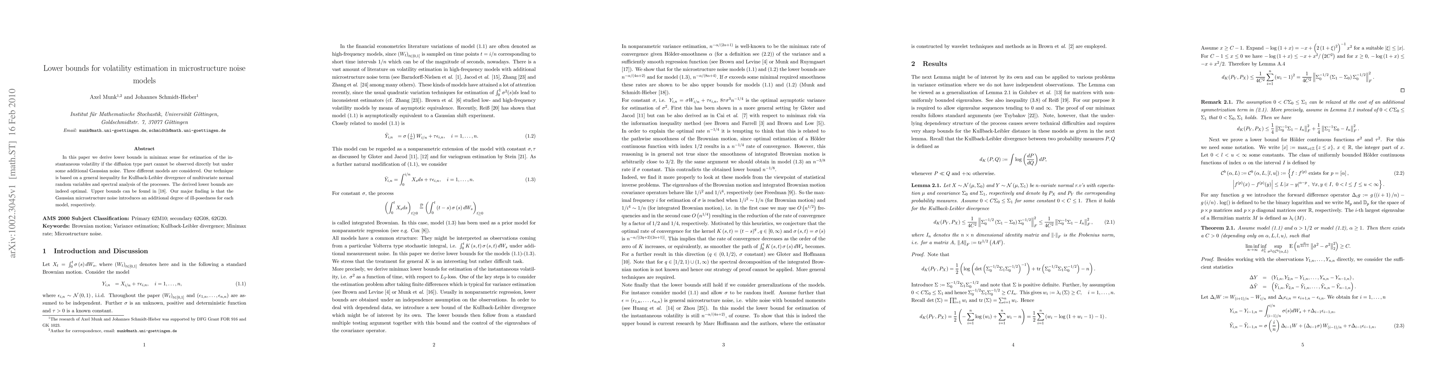 This paper establishes optimal lower bounds for estimating instantaneous volatility in microstructure noise models where the true diffusion is obscured by Gaussian noise. The authors utilize a general inequality for Kullback-Leibler divergence and spectral analysis to demonstrate that Gaussian noise adds an extra layer of ill-posedness to the estimation problem.