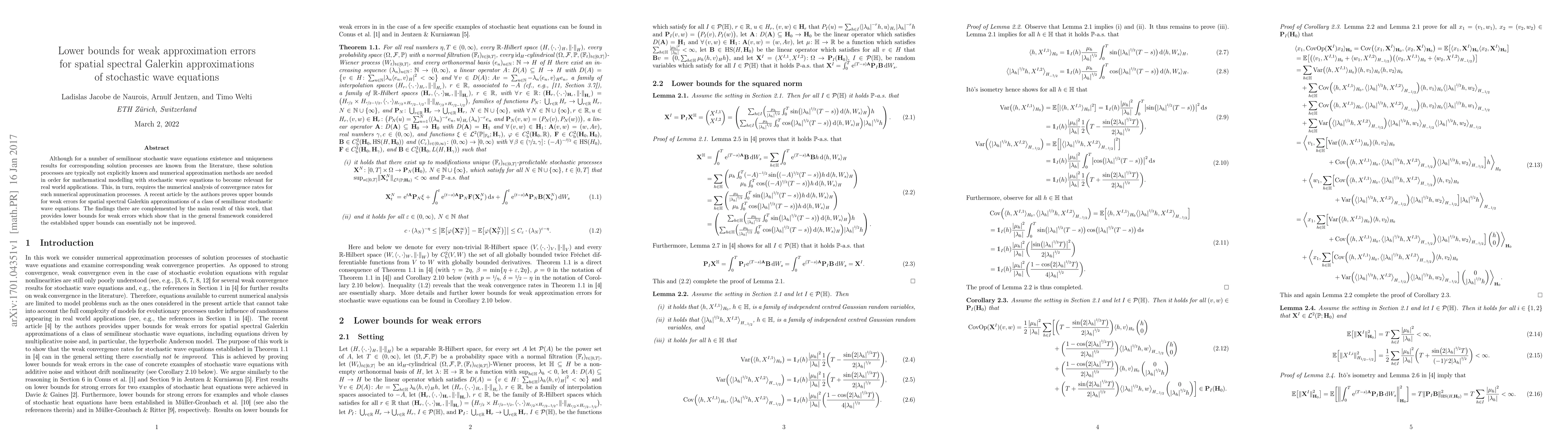This paper establishes lower bounds for weak approximation errors in spatial spectral Galerkin methods for semilinear stochastic wave equations, demonstrating that the previously proven upper bounds cannot be significantly improved. This complements existing numerical analysis for these equations, enhancing the understanding of their convergence rates.