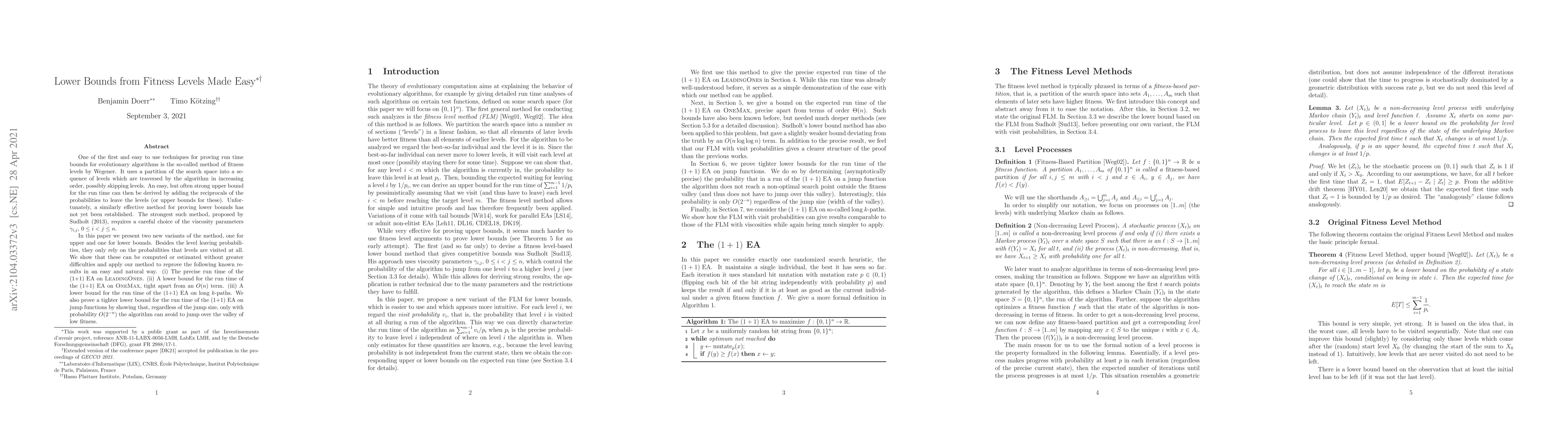 This paper introduces new variants of the method of fitness levels for proving both upper and lower bounds on the runtime of evolutionary algorithms. It simplifies the computation of lower bounds, which were previously difficult, and reproves known results for the (1+1) EA on \textsc{LeadingOnes}, \textsc{OneMax}, and long $k$-paths, along with a tighter lower bound for jump functions.