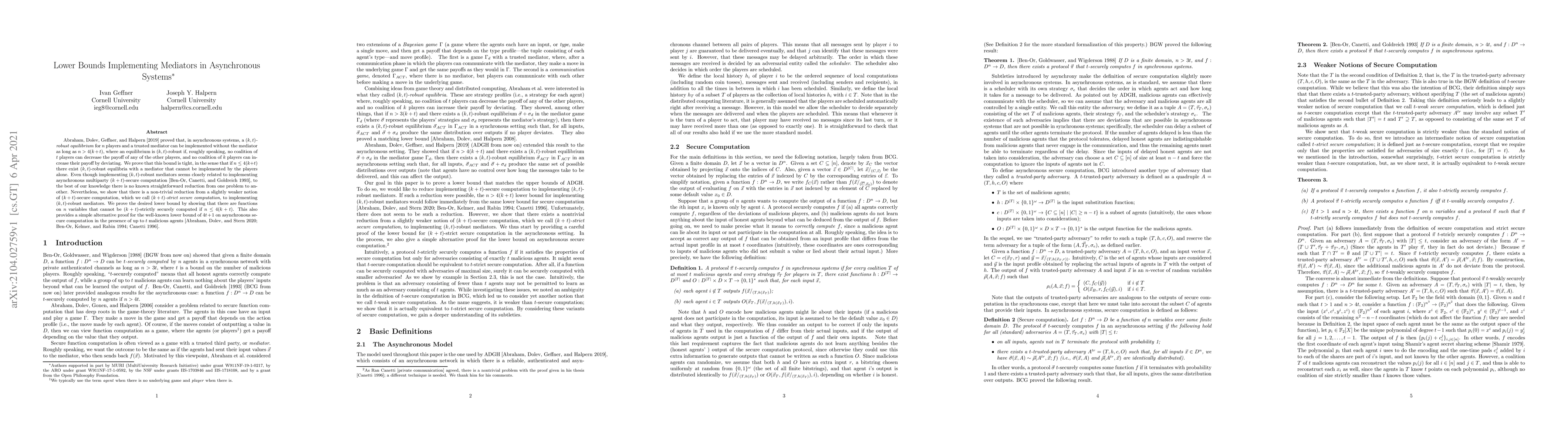 This paper establishes a lower bound for implementing mediators in asynchronous systems to achieve $k$-robustness with $t$-resistance, requiring $n > 4(k+t)$ players, and shows that this bound is tight for certain scenarios.