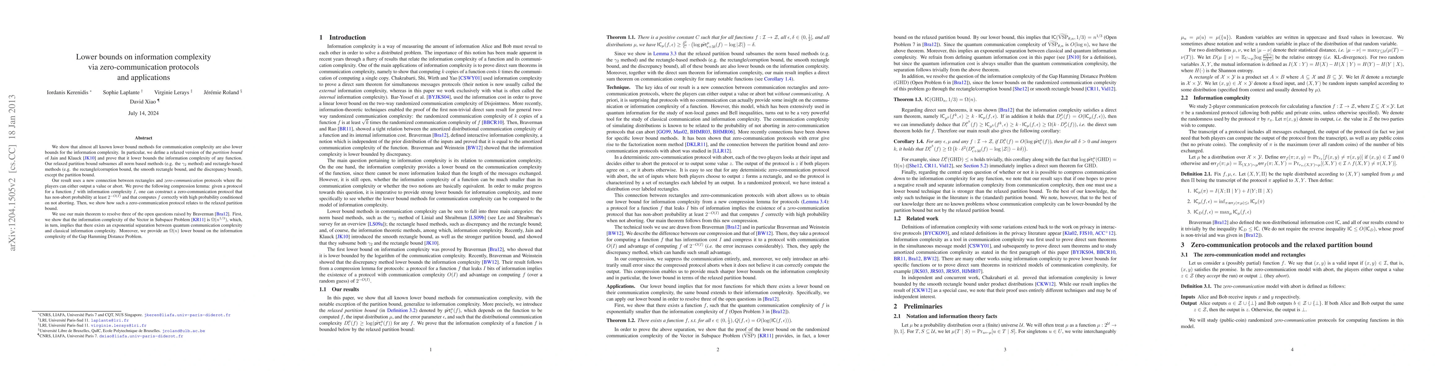 Researchers have proven that most known lower bounds for communication complexity also apply to information complexity, revealing exponential separations between quantum and classical systems, with implications for problems like Vector in Subspace and Gap Hamming Distance.