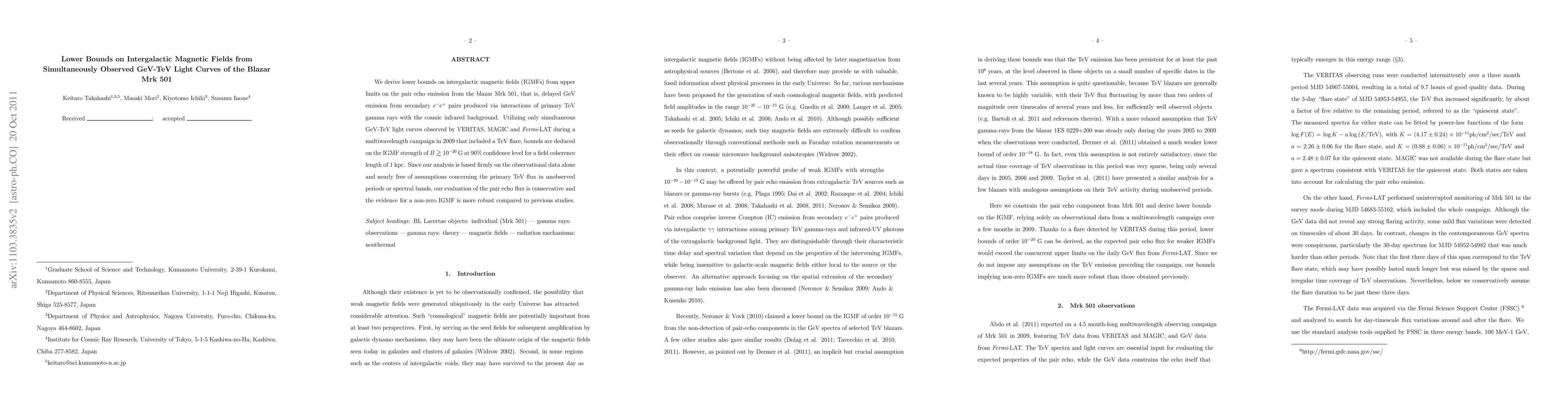 This paper derives lower bounds on intergalactic magnetic fields (IGMFs) using simultaneous GeV-TeV observations of the blazar Mrk 501, finding a minimum IGMF strength of $B \gtrsim 10^{-20} {\rm G}$ at 90% confidence, based on conservative analysis of observational data. The study provides robust evidence for a non-zero IGMF compared to previous assumptions.