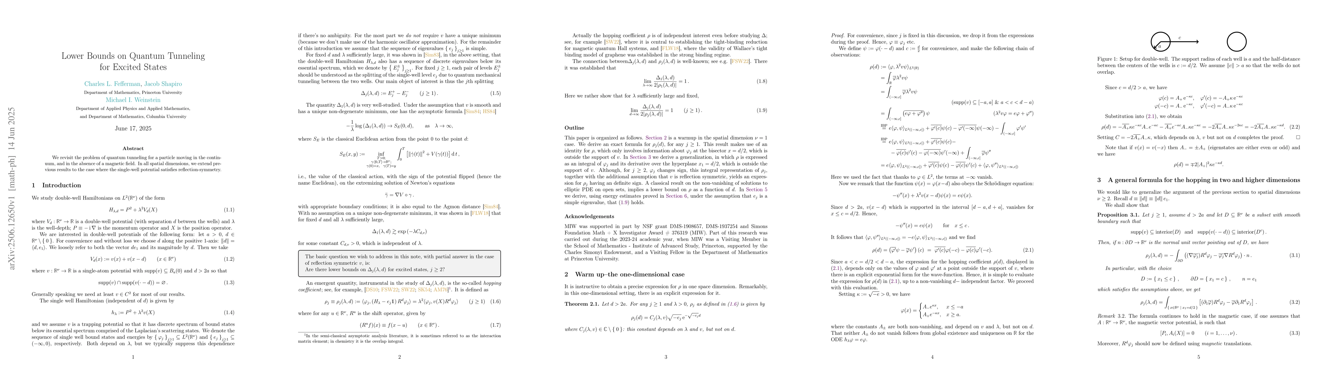 We revisit the problem of quantum tunneling for a particle moving in the continuum, and in the absence of a magnetic field. In all spatial dimensions, we extend previous results to the case where the single-well potential satisfies reflection-symmetry.