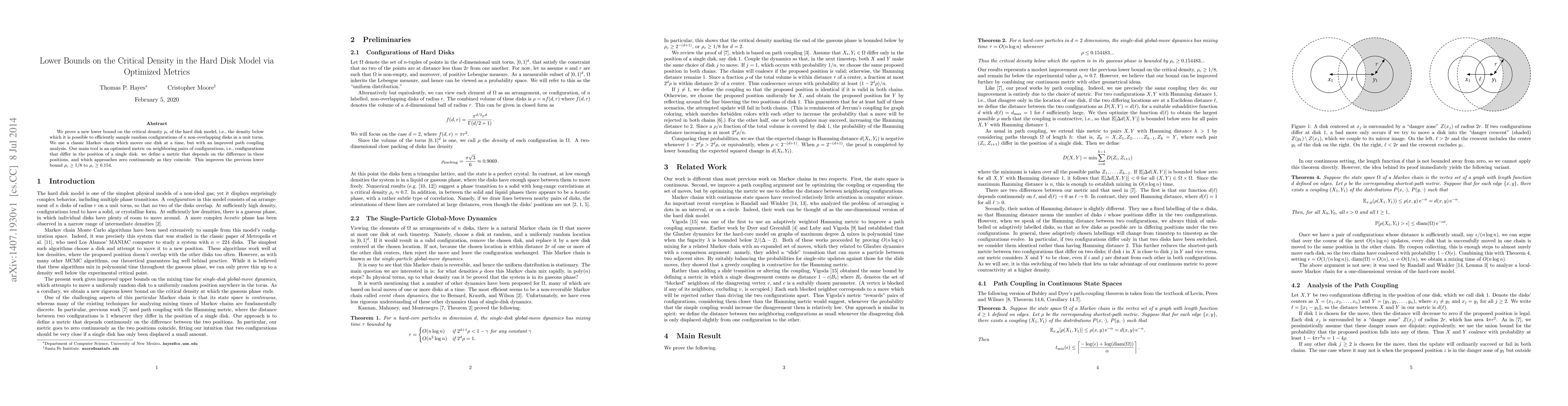 Researchers have improved a lower bound on the critical density of the hard disk model, from 1/8 to 0.154, by developing an optimized metric for measuring changes between configurations.