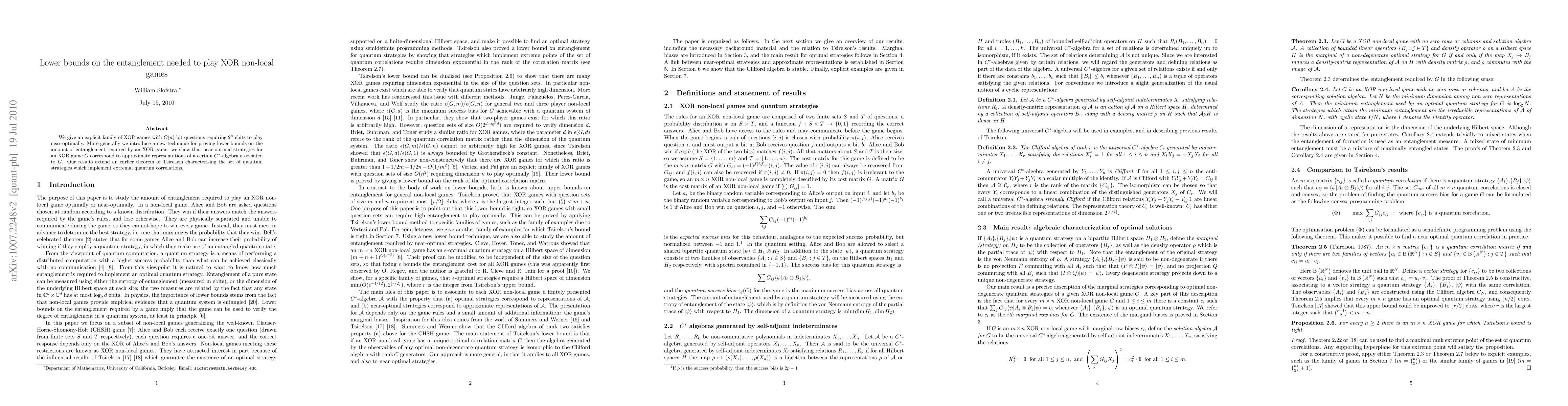 This paper establishes a lower bound of 2^n ebits for O(n)-bit XOR games, demonstrating that near-optimal strategies correspond to approximate representations of a C^*-algebra. It introduces a new technique for proving entanglement requirements in XOR non-local games.