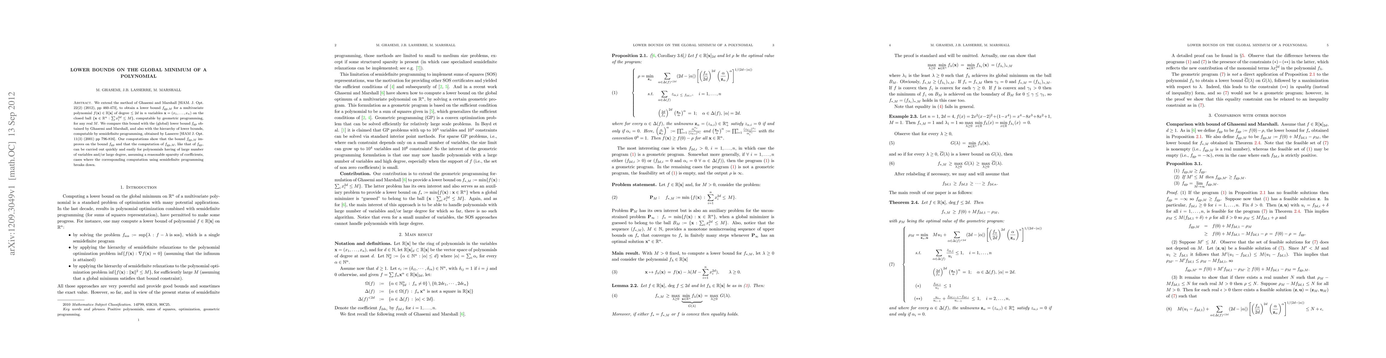 This research paper establishes a new lower bound for polynomials of degree 2d in n variables, computable through geometric programming, which improves upon existing bounds and is suitable for large number of variables or high-degree polynomials.