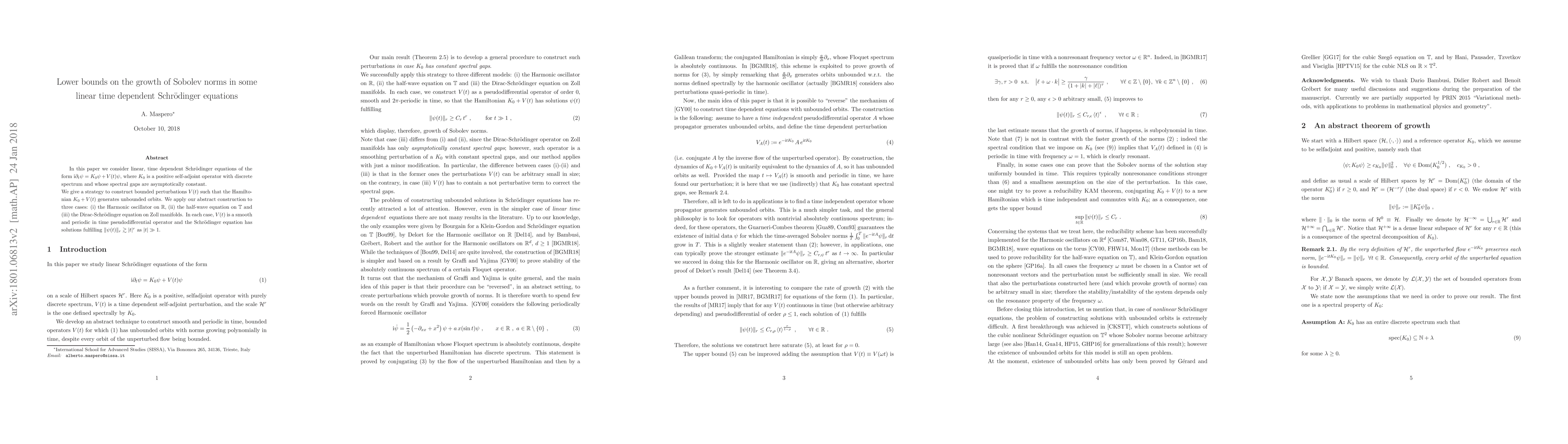 This paper explores linear time-dependent Schrödinger equations with bounded perturbations that generate unbounded Sobolev norms for solutions, demonstrating this effect in three specific cases: the Harmonic oscillator, the half-wave equation, and the Dirac-Schrödinger equation on the sphere.