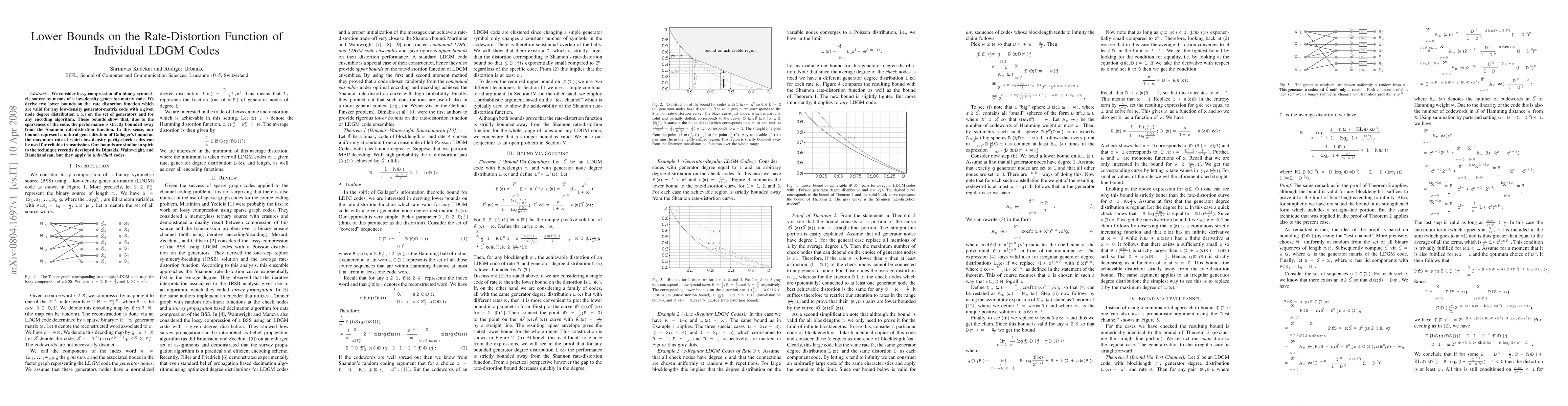 This paper derives two lower bounds on the rate-distortion function for low-density generator-matrix (LDGM) codes used in lossy compression of binary symmetric sources. The bounds show that the performance of LDGM codes is inherently limited compared to the Shannon rate-distortion function due to the code's sparseness.