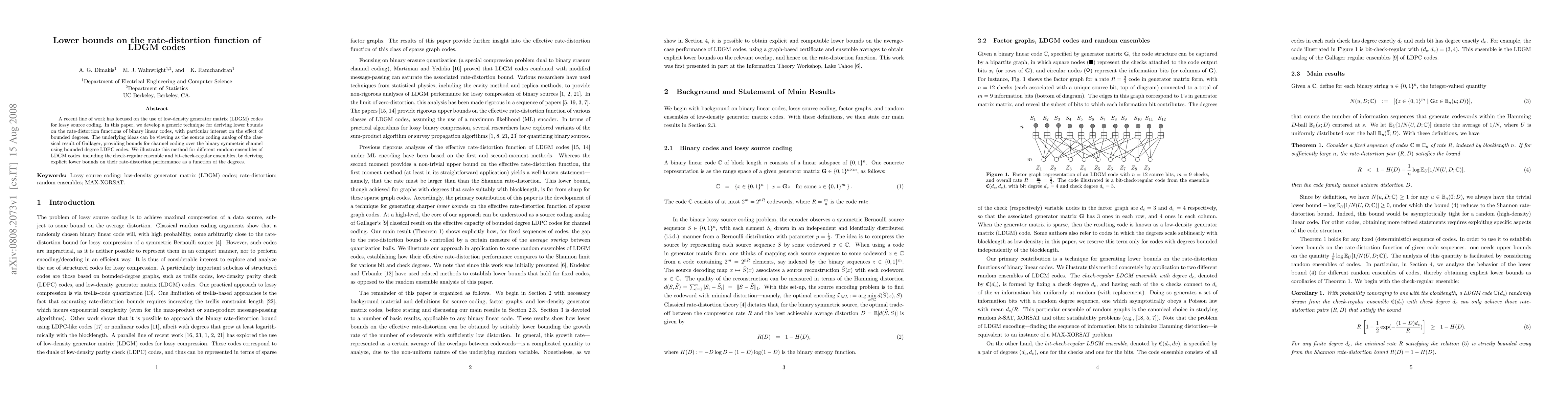 A recent line of work has focused on the use of low-density generator matrix (LDGM) codes for lossy source coding. In this paper, wedevelop a generic technique for deriving lower bounds on the rate-distortion functions of binary linear codes, with particular interest on the effect of bounded degrees. The underlying ideas can be viewing as the source coding analog of the classical result of Gallager, providing bounds for channel coding over the binary symmetric channel using bounded degree LDPC codes. We illustrate this method for different random ensembles of LDGM codes, including the check-regular ensemble and bit-check-regular ensembles, by deriving explicit lower bounds on their rate-distortion performance as a function of the degrees.
