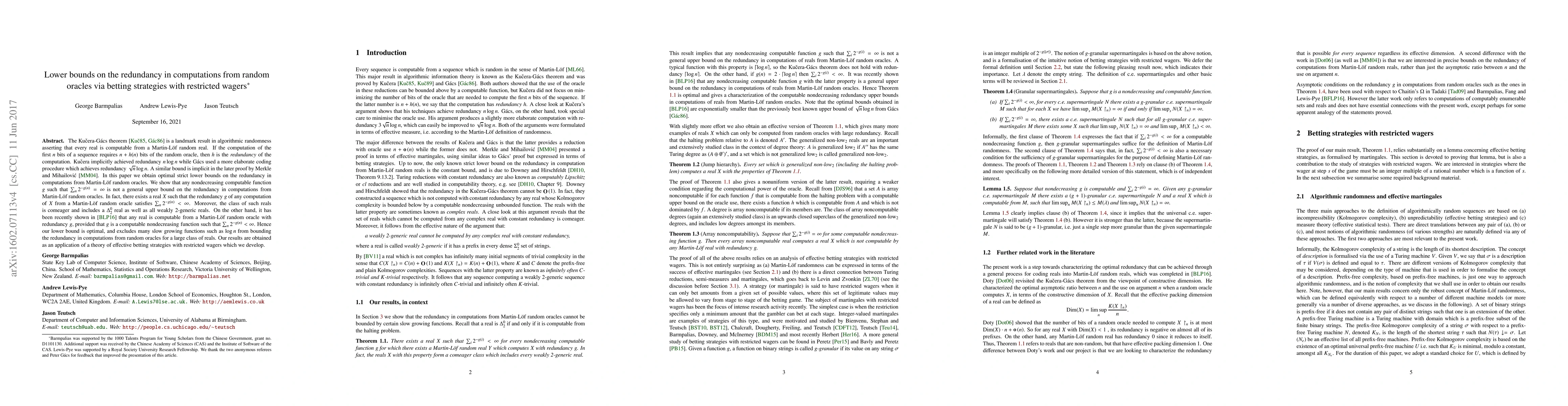 The Ku\v{c}era-G\'acs theorem is a landmark result in algorithmic randomness asserting that every real is computable from a Martin-L\"of random real. If the computation of the first $n$ bits of a sequence requires $n+h(n)$ bits of the random oracle, then $h$ is the redundancy of the computation. Ku\v{c}era implicitly achieved redundancy $n\log n$ while G\'acs used a more elaborate coding procedure which achieves redundancy $\sqrt{n}\log n$. A similar upper bound is implicit in the later proof by Merkle and Mihailovi\'c. In this paper we obtain strict optimal lower bounds on the redundancy in computations from Martin-L\"of random oracles. We show that any nondecreasing computable function $g$ such that $\sum_n 2^{-g(n)}=\infty$ is not a general upper bound on the redundancy in computations from Martin-L\"of random oracles. In fact, there exists a real $X$ such that the redundancy $g$ of any computation of $X$ from a Martin-L\"of random oracle satisfies $\sum_n 2^{-g(n)}<\infty$. Moreover, the class of such reals is comeager and includes a $\Delta^0_2$ real as well as all weakly 2-generic reals. This excludes many slow growing functions such as $\log n$ from bounding the redundancy in computations from random oracles for a large class of reals. On the other hand it was recently shown that if $\sum_n 2^{-g(n)}<\infty$ then $g$ is a general upper bound for the redundancy in computations of any real from some Martin-L\"of random oracle. Our results are obtained as an application of a theory of effective betting strategies with restricted wagers which we develop.