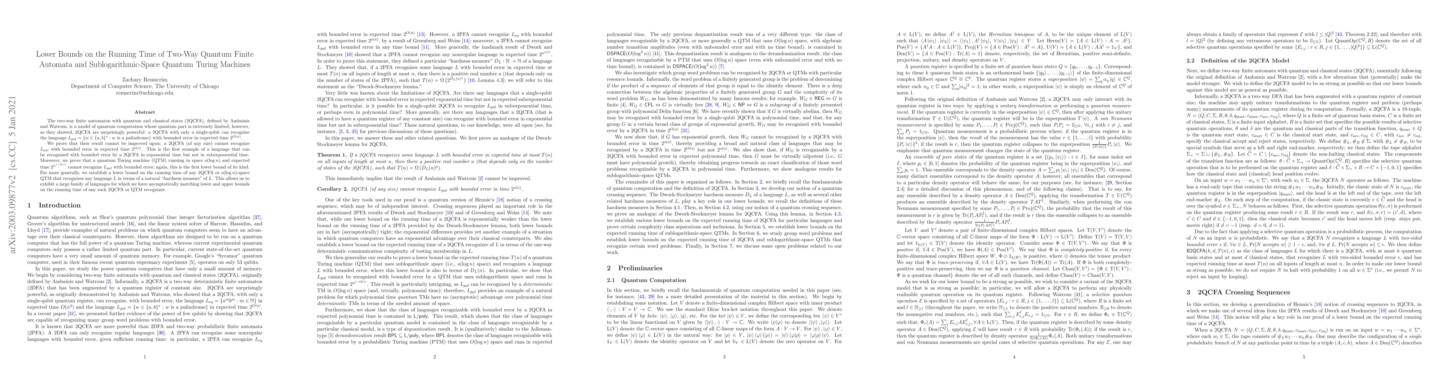 The two-way finite automaton with quantum and classical states (2QCFA), defined by Ambainis and Watrous, is a model of quantum computation whose quantum part is extremely limited; however, as they showed, 2QCFA are surprisingly powerful: a 2QCFA with only a single-qubit can recognize the language $L_{pal}=\{w \in \{a,b\}^*:w \text{ is a palindrome}\}$ with bounded error in expected time $2^{O(n)}$, on inputs of length $n$. We prove that their result essentially cannot be improved upon: a 2QCFA (of any size) cannot recognize $L_{pal}$ with bounded error in expected time $2^{o(n)}$. To our knowledge, this is the first example of a language that can be recognized with bounded error by a 2QCFA in exponential time but not in subexponential time. Moreover, we prove that a quantum Turing machine (QTM) running in space $o(\log n)$ and expected time $2^{n^{1-\Omega(1)}}$ cannot recognize $L_{pal}$ with bounded error; again, this is the first lower bound of its kind. Far more generally, we establish a lower bound on the running time of any 2QCFA or $o(\log n)$-space QTM that recognizes any language $L$ in terms of a natural "hardness measure" of $L$. This allows us to exhibit a large family of languages for which we have asymptotically matching lower and upper bounds on the running time of any such 2QCFA or QTM recognizer.