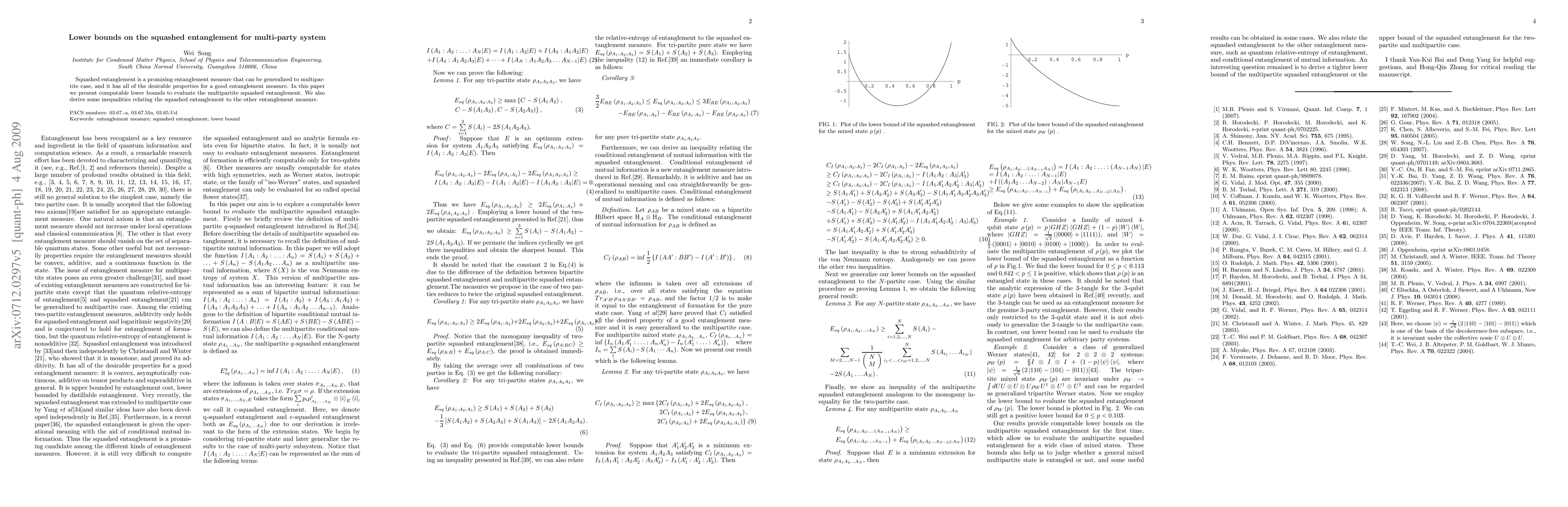 This paper presents computable lower bounds for evaluating multipartite squashed entanglement, a desirable entanglement measure, and derives inequalities relating it to other entanglement measures. The findings provide a framework for assessing multi-party entanglement.