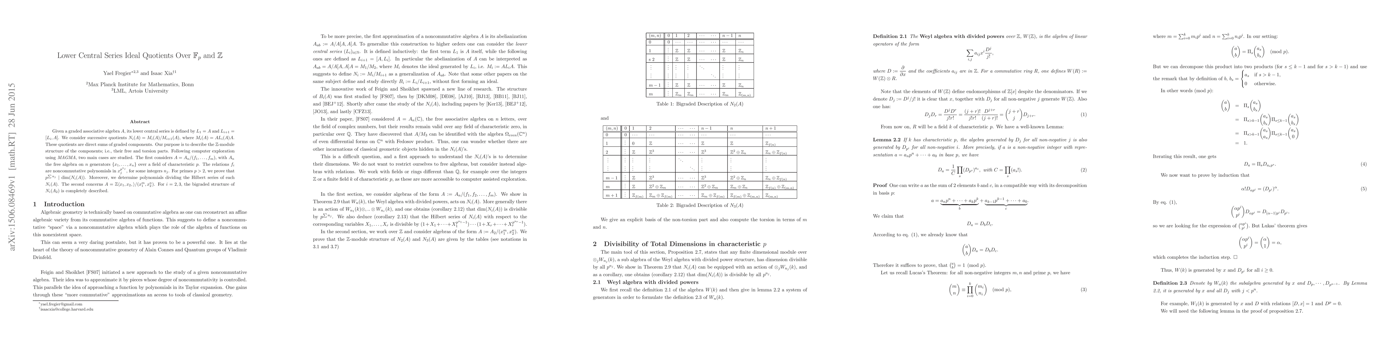 This paper explores the $\mathbb{Z}$-module structure of lower central series ideal quotients in graded associative algebras over fields of characteristic $p$ and over $\mathbb{Z}$. For algebras over fields, it proves that $p^{\sum n_j}$ divides the dimension of certain quotients, and identifies polynomials in the Hilbert series. For $\mathbb{Z}$-algebras, it fully describes the bigraded structure of the quotients for $i = 2,3$.