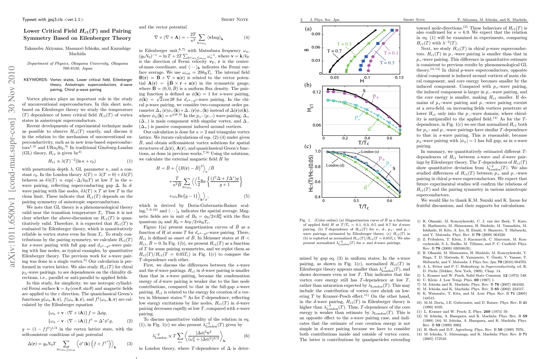 We quantitatively estimate different T-dependences of Hc1 between s wave and d wave pairings by Eilenberger theory. The T-dependences of Hc1(T) show quantitative deviation from those in London theory. We also study differences of Hc1(T) between p+ and p- wave pairing in chiral p wave superconductors. There, Hc1(T) is lower in p- wave pairing, and shows the same T-dependence as in s wave pairing.