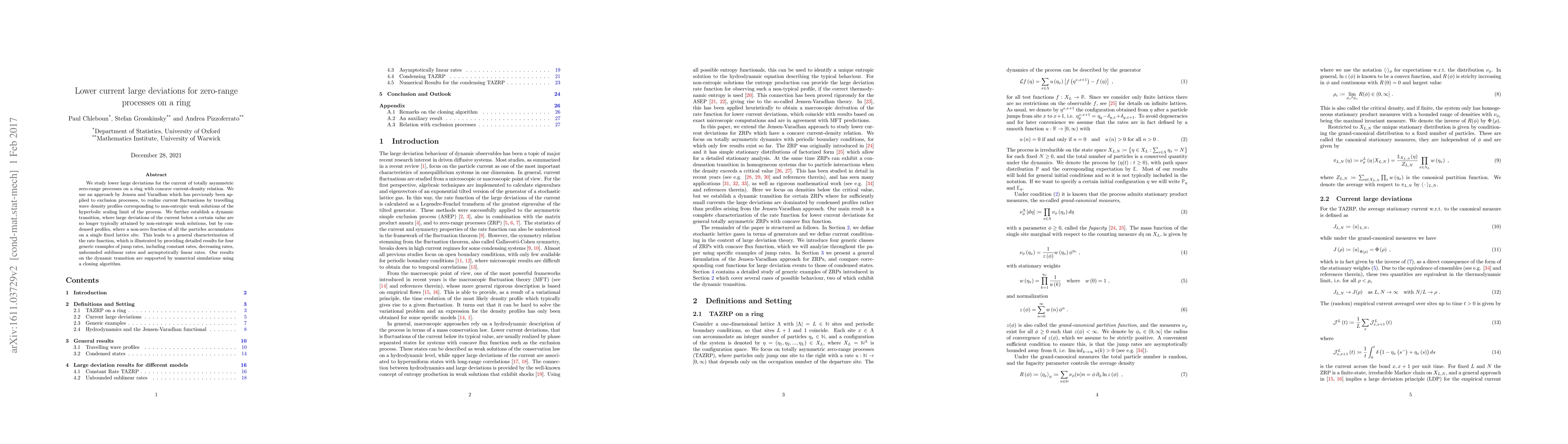 Research finds lower large deviations for current in zero-range processes on a ring, with a dynamic transition where particles accumulate at a fixed site below a certain threshold. This is characterized by a general rate function.