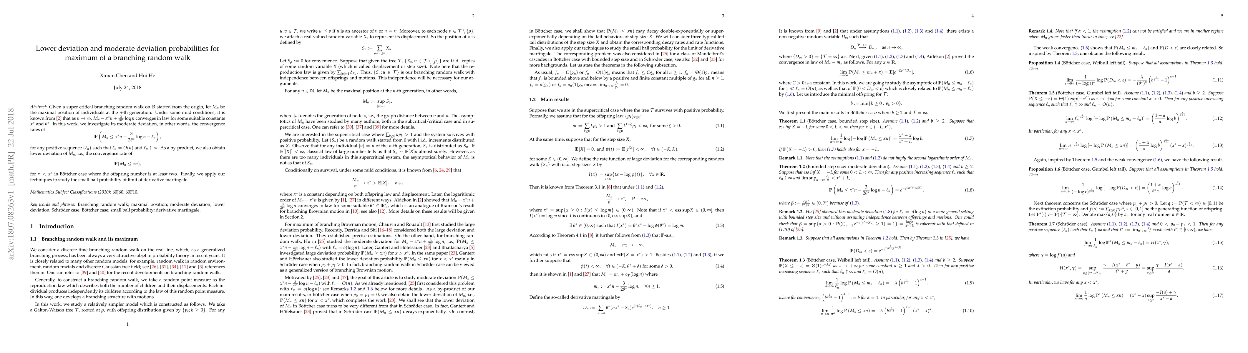 This research paper investigates the convergence rates of branching random walks under moderate deviation, focusing on lower and upper bounds for probabilities related to maximal positions and derivatives.