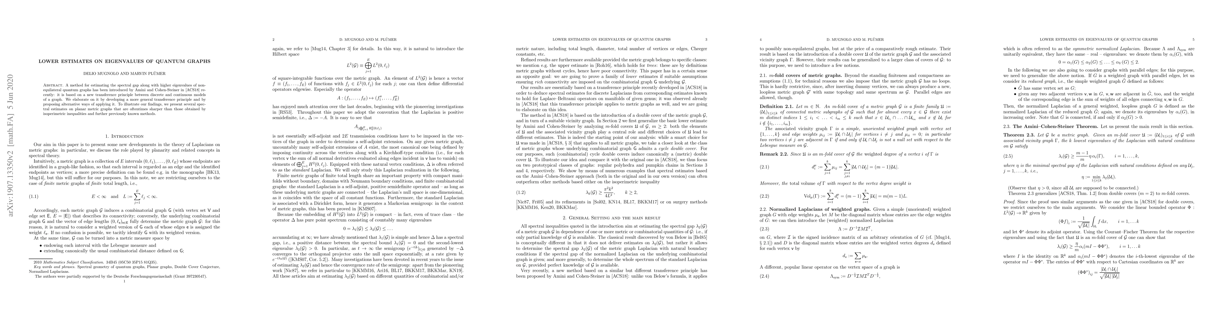 A method for estimating the spectral gap along with higher eigenvalues of nonequilateral quantum graphs has been introduced by Amini and Cohen-Steiner recently: it is based on a new transference principle between discrete and continuous models of a graph. We elaborate on it by developing a more general transference principle and by proposing alternative ways of applying it. To illustrate our findings, we present several spectral estimates on planar metric graphs that are oftentimes sharper than those obtained by isoperimetric inequalities and further previously known methods.