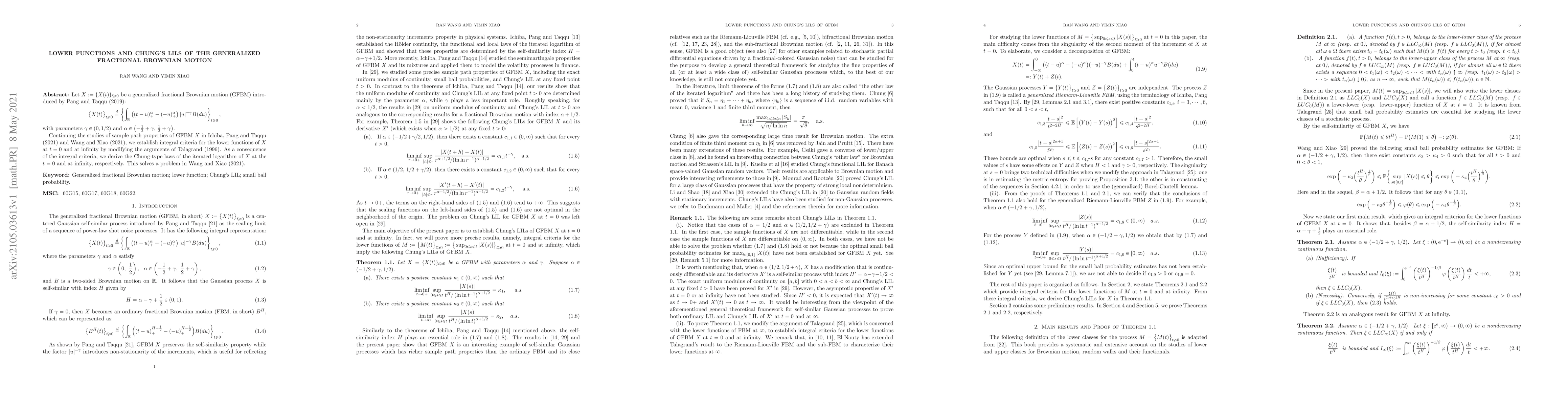Let $X:=\{X(t)\}_{t\ge0}$ be a generalized fractional Brownian motion (GFBM) introduced by Pang and Taqqu (2019): $$ \big\{X(t)\big\}_{t\ge0}\overset{d}{=}\left\{ \int_{\mathbb R} \left((t-u)_+^{\alpha}-(-u)_+^{\alpha} \right) |u|^{-\gamma} B(du) \right\}_{t\ge0}, $$ with parameters $\gamma \in (0, 1/2)$ and $\alpha\in \left(-\frac12+ \gamma , \, \frac12+ \gamma \right)$. Continuing the studies of sample path properties of GFBM $X$ in Ichiba, Pang and Taqqu (2021) and Wang and Xiao (2021), we establish integral criteria for the lower functions of $X$ at $t=0$ and at infinity by modifying the arguments of Talagrand (1996). As a consequence of the integral criteria, we derive the Chung-type laws of the iterated logarithm of $X$ at the $t=0$ and at infinity, respectively. This solves a problem in Wang and Xiao (2021).