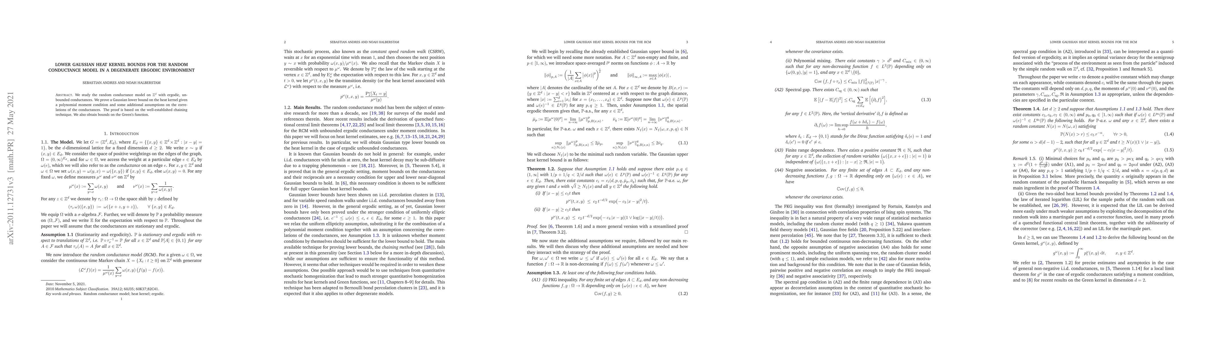 We study the random conductance model on $\mathbb{Z}^d$ with ergodic, unbounded conductances. We prove a Gaussian lower bound on the heat kernel given a polynomial moment condition and some additional assumptions on the correlations of the conductances. The proof is based on the well-established chaining technique. We also obtain bounds on the Green's function.