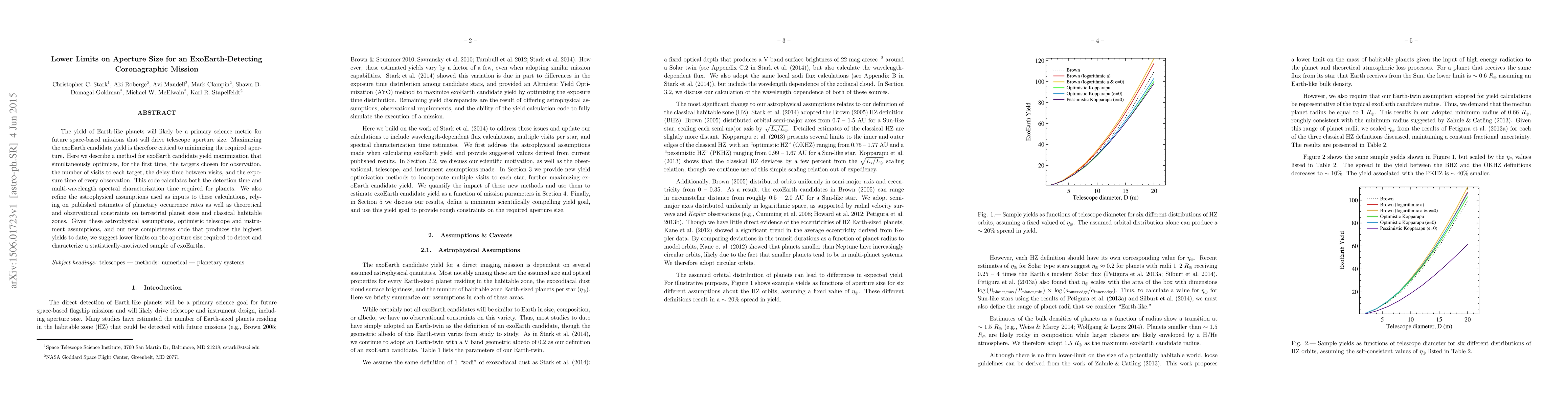 The yield of Earth-like planets will likely be a primary science metric for future space-based missions that will drive telescope aperture size. Maximizing the exoEarth candidate yield is therefore critical to minimizing the required aperture. Here we describe a method for exoEarth candidate yield maximization that simultaneously optimizes, for the first time, the targets chosen for observation, the number of visits to each target, the delay time between visits, and the exposure time of every observation. This code calculates both the detection time and multi-wavelength spectral characterization time required for planets. We also refine the astrophysical assumptions used as inputs to these calculations, relying on published estimates of planetary occurrence rates as well as theoretical and observational constraints on terrestrial planet sizes and classical habitable zones. Given these astrophysical assumptions, optimistic telescope and instrument assumptions, and our new completeness code that produces the highest yields to date, we suggest lower limits on the aperture size required to detect and characterize a statistically-motivated sample of exoEarths.