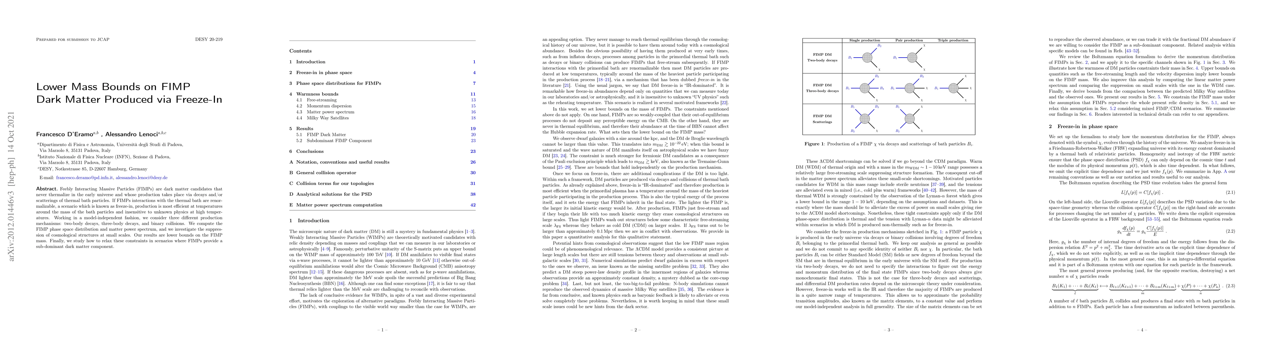 Researchers explored production mechanisms of FIMPs via freeze-in, finding lower mass bounds that constrain cosmological structures at small scales. They also considered scenarios where FIMPs provide a sub-dominant dark matter component.