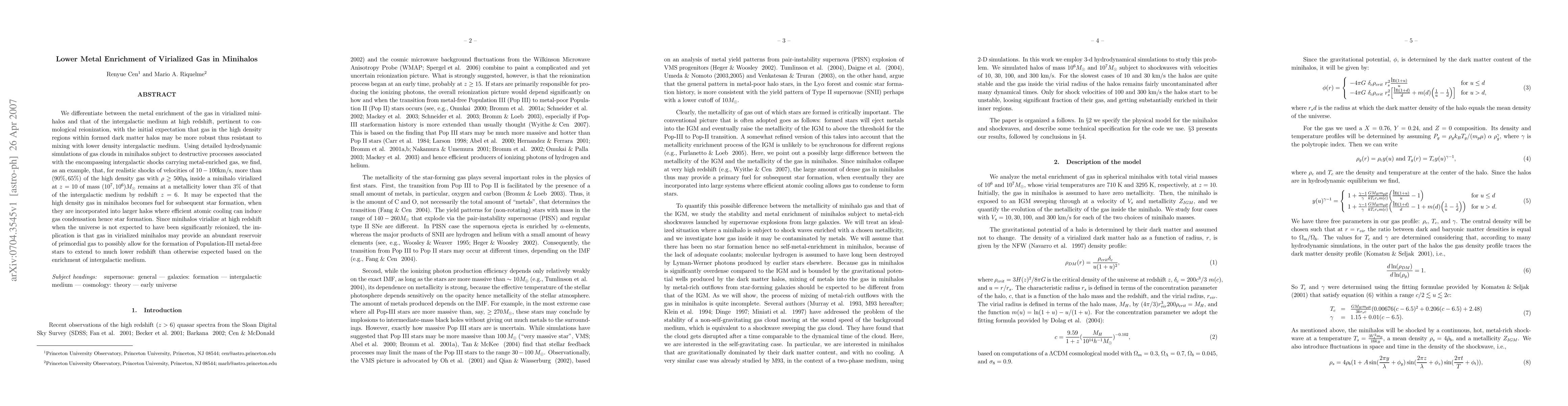 This research finds that gas in virialized minihalos at high redshift maintains lower metal enrichment compared to the intergalactic medium, with over 90% of dense gas remaining below 3% of the intergalactic medium's metallicity by z=6. This suggests that minihalos could serve as a primordial gas reservoir, potentially enabling the formation of Population-III stars at lower redshifts than previously anticipated.