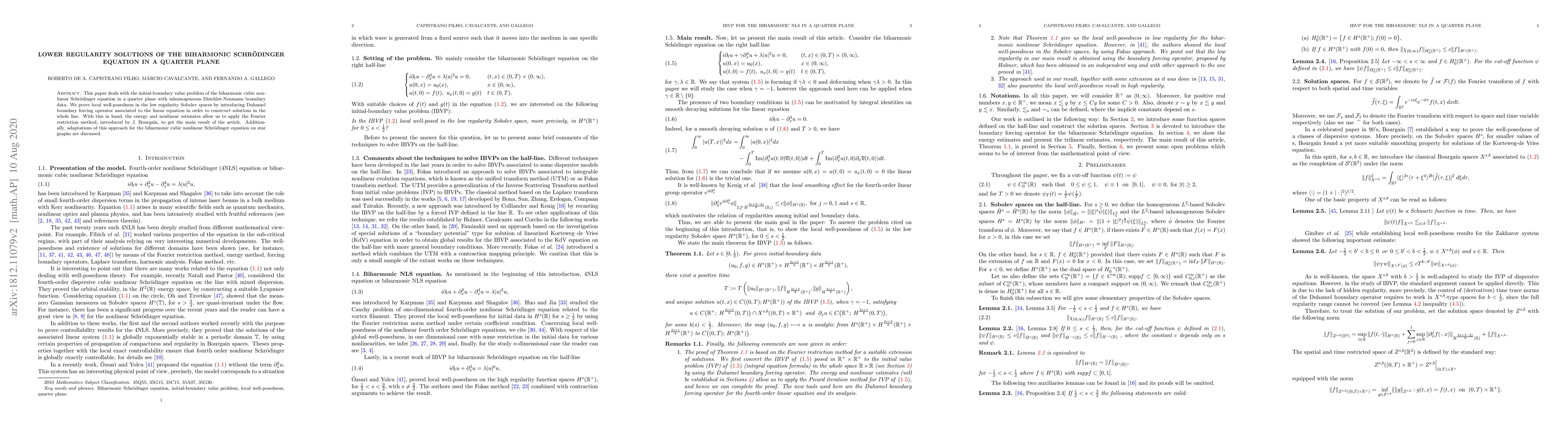 This paper deals with the initial-boundary value problem of the biharmonic cubic nonlinear Schr\"odinger equation in a quarter plane with inhomogeneous Dirichlet-Neumann boundary data. We prove local well-posedness in the low regularity Sobolev spaces introducing Duhamel boundary forcing operator associated to the linear equation to construct solutions on the whole line. With this in hands, the energy and nonlinear estimates allow us to apply Fourier restriction method, introduced by J. Bourgain, to get the main result of the article. Additionally, adaptations of this approach for the biharmonic cubic nonlinear Schr\"odinger equation on star graphs are also discussed.