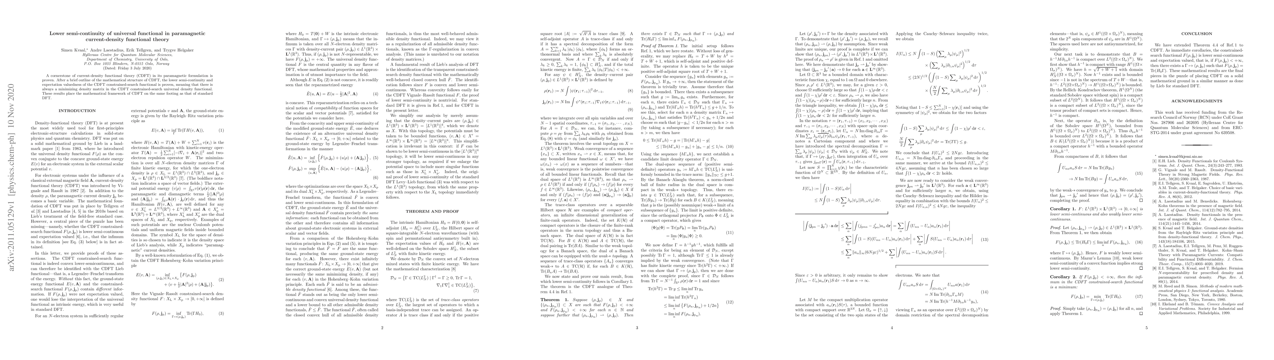 A cornerstone of current-density functional theory (CDFT) in its paramagnetic formulation is proven. After a brief outline of the mathematical structure of CDFT, the lower semi-continuity and expectation valuedness of the CDFT constrained-search functional is proven, meaning that there is always a minimizing density matrix in the CDFT constrained-search universal density functional. These results place the mathematical framework of CDFT on the same footing as that of standard DFT.