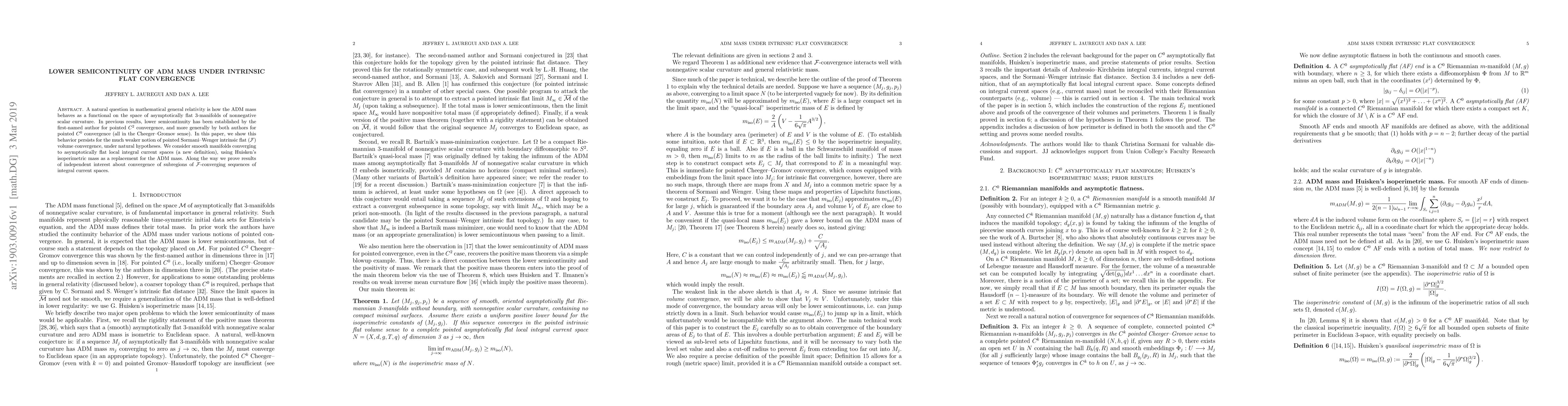 This paper demonstrates the lower semicontinuity of ADM mass under intrinsic flat convergence, extending previous results for $C^2$ and $C^0$ convergence to the weaker Sormani-Wenger intrinsic flat convergence. It introduces a new definition for asymptotically flat local integral current spaces and uses Huisken's isoperimetric mass as a substitute for ADM mass.