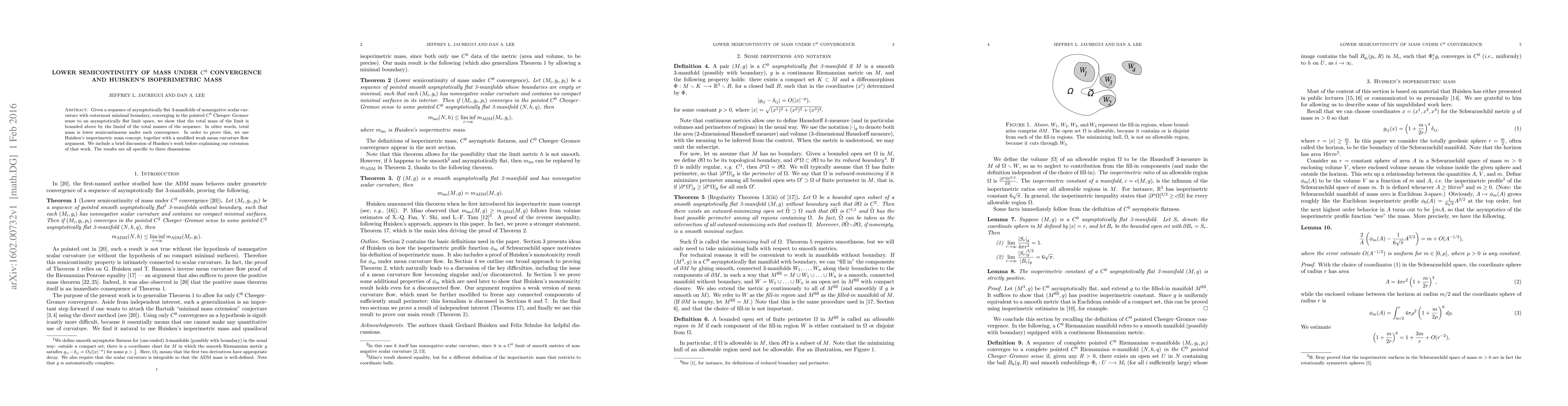 Given a sequence of asymptotically flat 3-manifolds of nonnegative scalar curvature with outermost minimal boundary, converging in the pointed $C^0$ Cheeger--Gromov sense to an asymptotically flat limit space, we show that the total mass of the limit is bounded above by the liminf of the total masses of the sequence. In other words, total mass is lower semicontinuous under such convergence. In order to prove this, we use Huisken's isoperimetric mass concept, together with a modified weak mean curvature flow argument. We include a brief discussion of Huisken's work before explaining our extension of that work. The results are all specific to three dimensions.