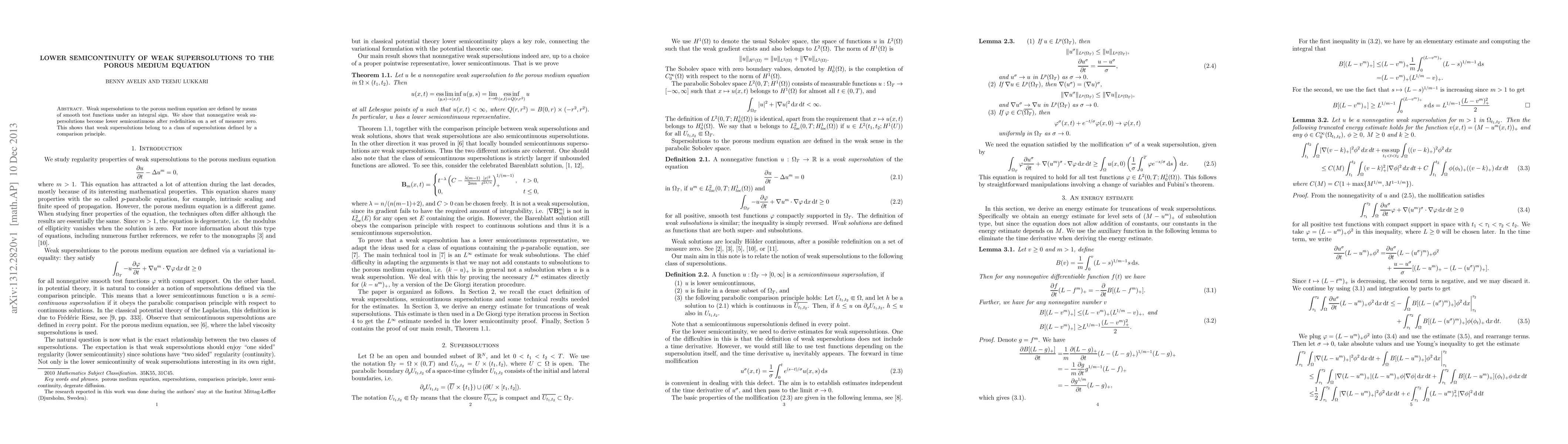 Summary: This paper demonstrates that nonnegative weak supersolutions to the porous medium equation are lower semicontinuous after redefining them on a set of measure zero, thereby establishing their classification within a class of supersolutions defined by a comparison principle.