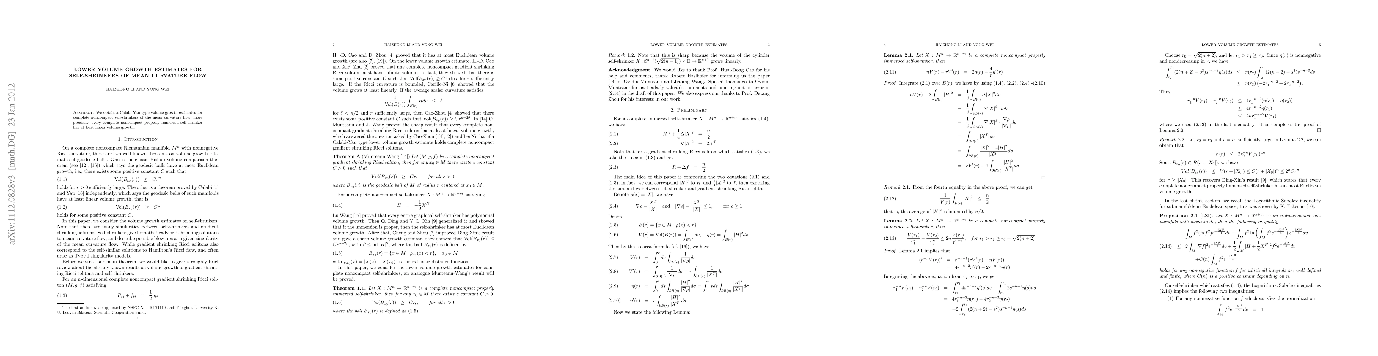 Summary: The paper establishes a Calabi-Yau type lower volume growth estimate for complete, noncompact self-shrinkers in mean curvature flow, proving that such self-shrinkers exhibit at least linear volume growth. This provides a new insight into the geometric properties of these solutions.