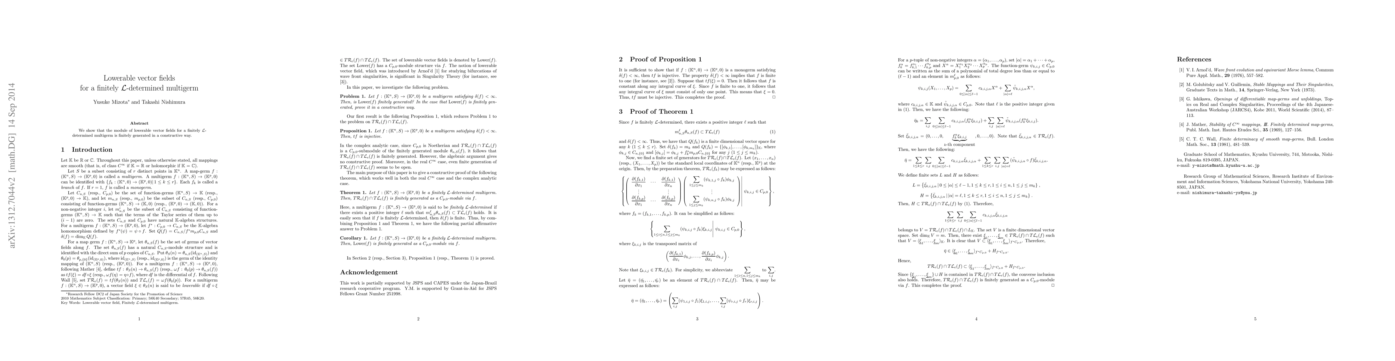 Researchers demonstrate that lowerable vector fields for finitely L-determined multigerms have a finite and constructively generated module.