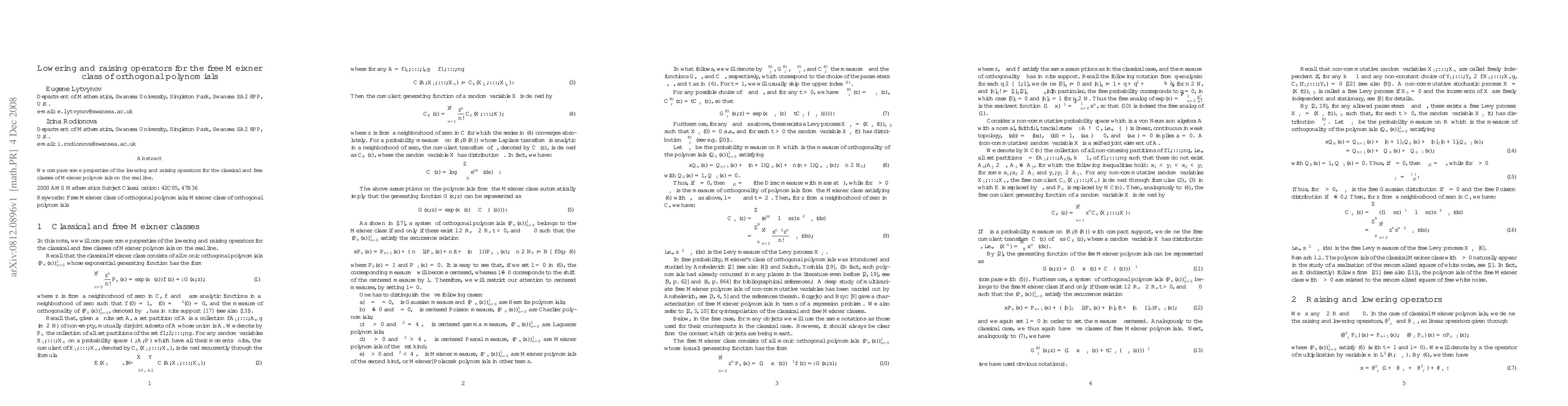Summary: This paper investigates the characteristics of lowering and raising operators for both classical and free Meixner polynomials, focusing on their application to orthogonal polynomials defined on the real line. The study aims to elucidate the differences and similarities between these two classes of Meixner polynomials.