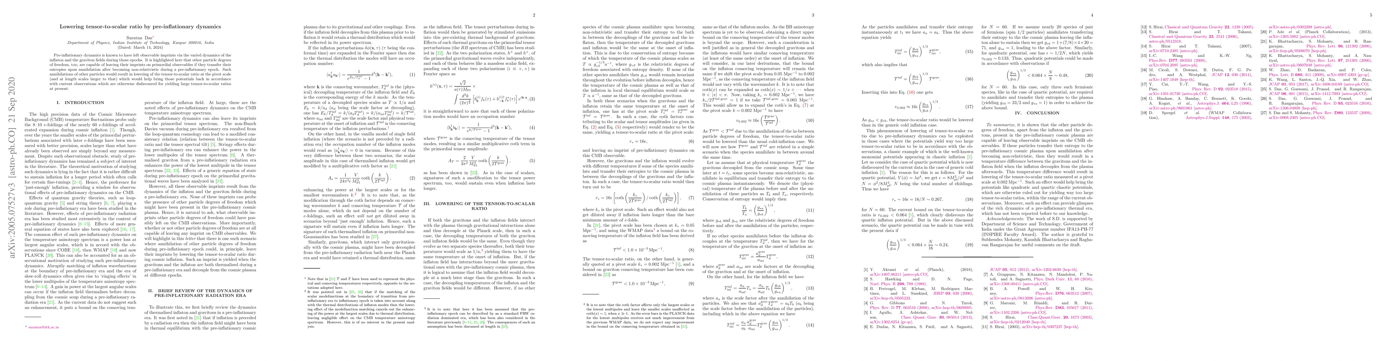 Pre-inflationary dynamics is known to have left observable imprints via the varied dynamics of the inflaton and the graviton fields during those epochs. It is highlighted here that other particle degrees of freedom, too, are capable of leaving their imprints on primordial observables if they transfer their entropies upon annihilation after becoming non-relativistic during a pre-inflationary epoch. Such annihilations of other particles would result in lowering of the tensor-to-scalar ratio at the pivot scale (and at length scales larger to that) which would help bring those potentials back in accordance with current observations which are otherwise disfavoured for yielding large tensor-to-scalar ratios at present.