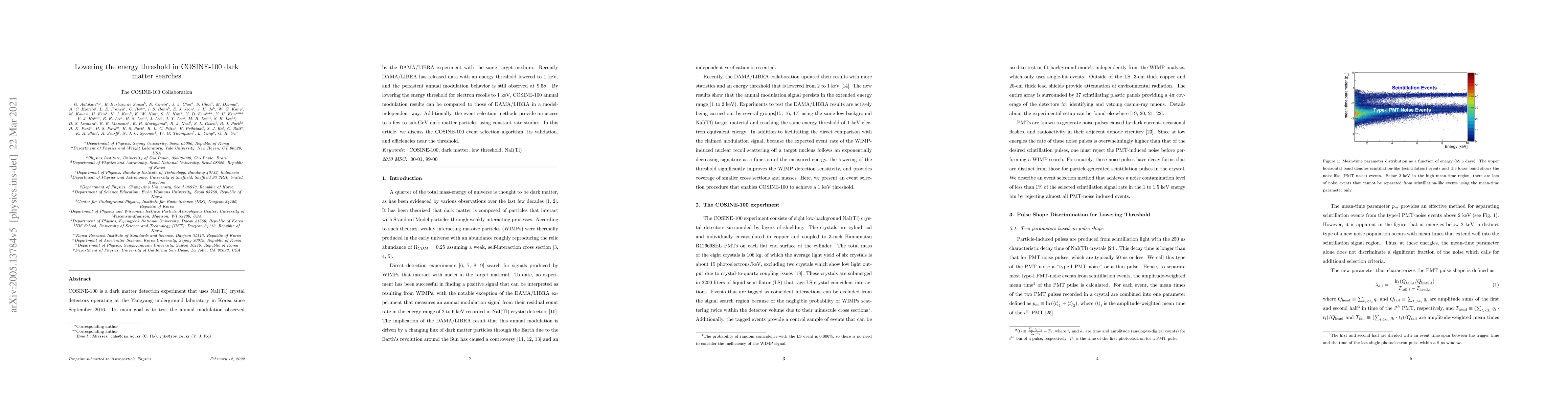COSINE-100 lowers its energy threshold to 1 keV to compare dark matter detection results with DAMA/LIBRA, aiming to validate the annual modulation observed in low-energy electron recoils. The study discusses the event selection algorithm, validation, and efficiencies crucial for detecting sub-GeV dark matter particles.