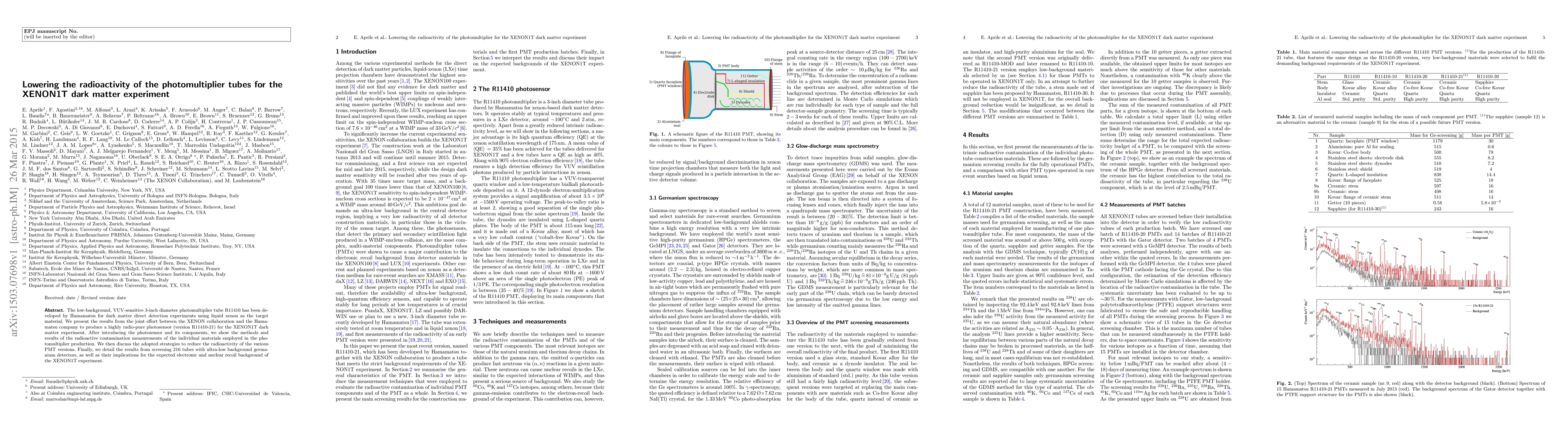This paper details the collaborative efforts between the XENON collaboration and Hamamatsu to develop a highly radio-pure photomultiplier tube (R11410-21) for the XENON1T dark matter experiment, presenting methods and results of radioactive contamination measurements and strategies to reduce radioactivity, ultimately aiming to lower the background noise for the experiment.