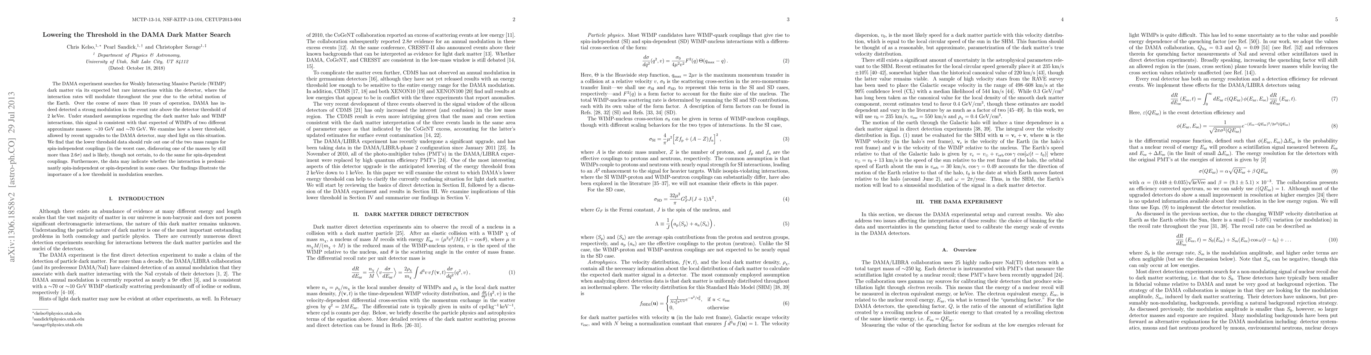The DAMA experiment searches for Weakly Interacting Massive Particle (WIMP) dark matter via its expected but rare interactions within the detector, where the interaction rates will modulate throughout the year due to the orbital motion of the Earth. Over the course of more than 10 years of operation, DAMA has indeed detected a strong modulation in the event rate above the detector threshold of 2 keVee. Under standard assumptions regarding the dark matter halo and WIMP interactions, this signal is consistent with that expected of WIMPs of two different approximate masses: ~ 10 GeV and ~ 70 GeV. We examine how a lower threshold, allowed by recent upgrades to the DAMA detector, may shed light on this situation. We find that the lower threshold data should rule out one of the two mass ranges for spin-independent couplings (in the worst case, disfavoring one of the masses by still more than 2.6$\sigma$) and is likely, though not certain, to do the same for spin-dependent couplings. Furthermore, the data may indicate whether the interaction is predominantly spin-independent or spin-dependent in some cases. Our findings illustrate the importance of a low threshold in modulation searches.