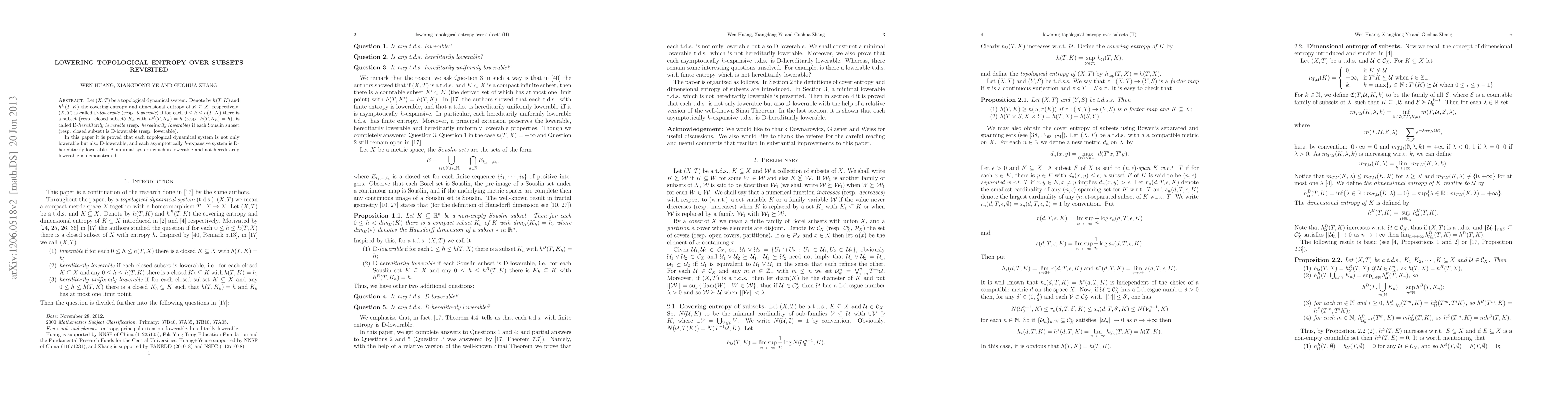 Let $(X, T)$ be a topological dynamical system. Denote by $h (T, K)$ and $h^B (T, K)$ the covering entropy and dimensional entropy of $K\subseteq X$, respectively. $(X, T)$ is called D-{\it lowerable} (resp. {\it lowerable}) if for each $0\le h\le h (T, X)$ there is a subset (resp. closed subset) $K_h$ with $h^B (T, K_h)= h$ (resp. $h (T, K_h)= h$); is called D-{\it hereditarily lowerable} (resp. {\it hereditarily lowerable}) if each Souslin subset (resp. closed subset) is D-lowerable (resp. lowerable). In this paper it is proved that each topological dynamical system is not only lowerable but also D-lowerable, and each asymptotically $h$-expansive system is D-hereditarily lowerable. A minimal system which is lowerable and not hereditarily lowerable is demonstrated.